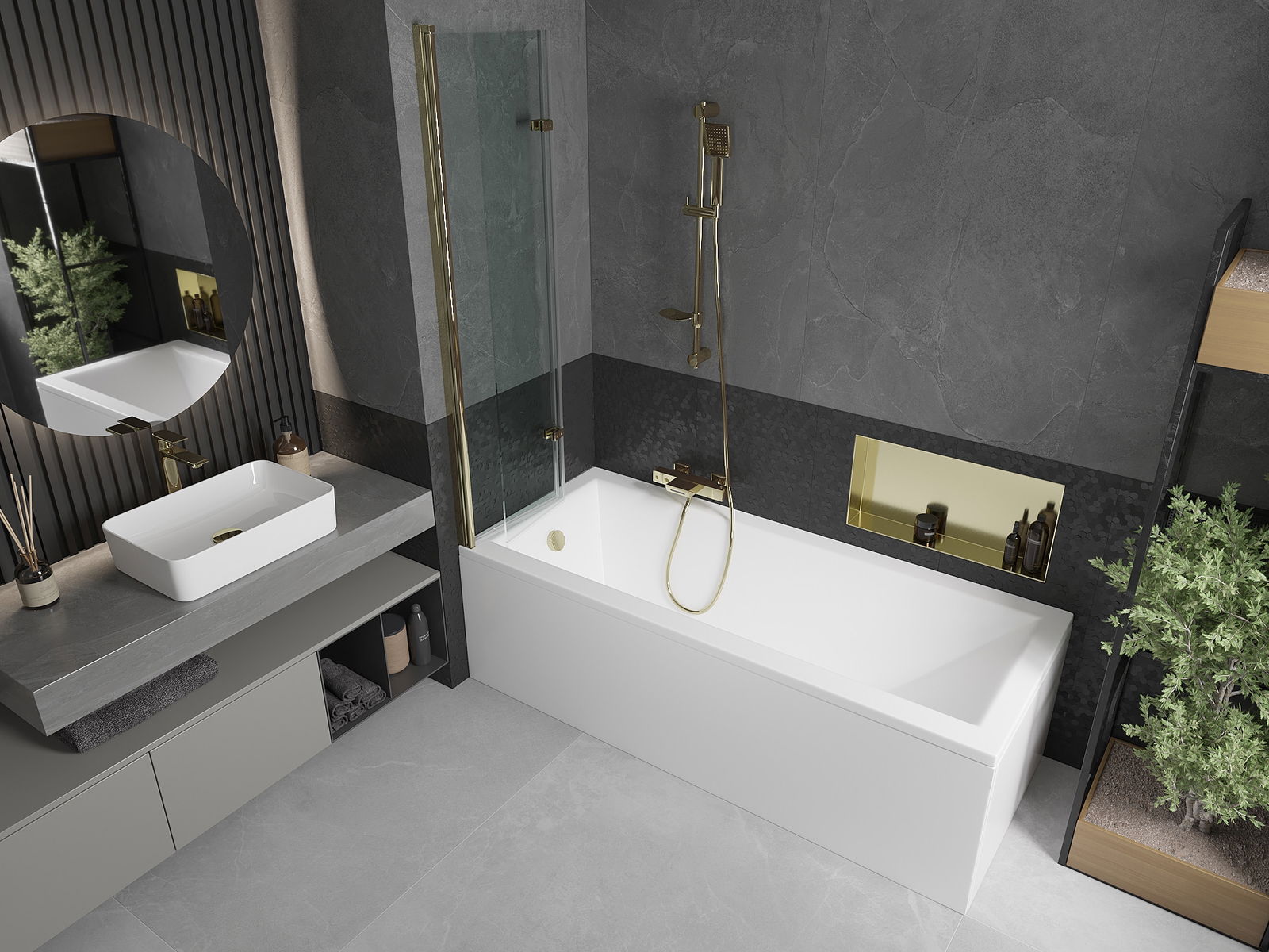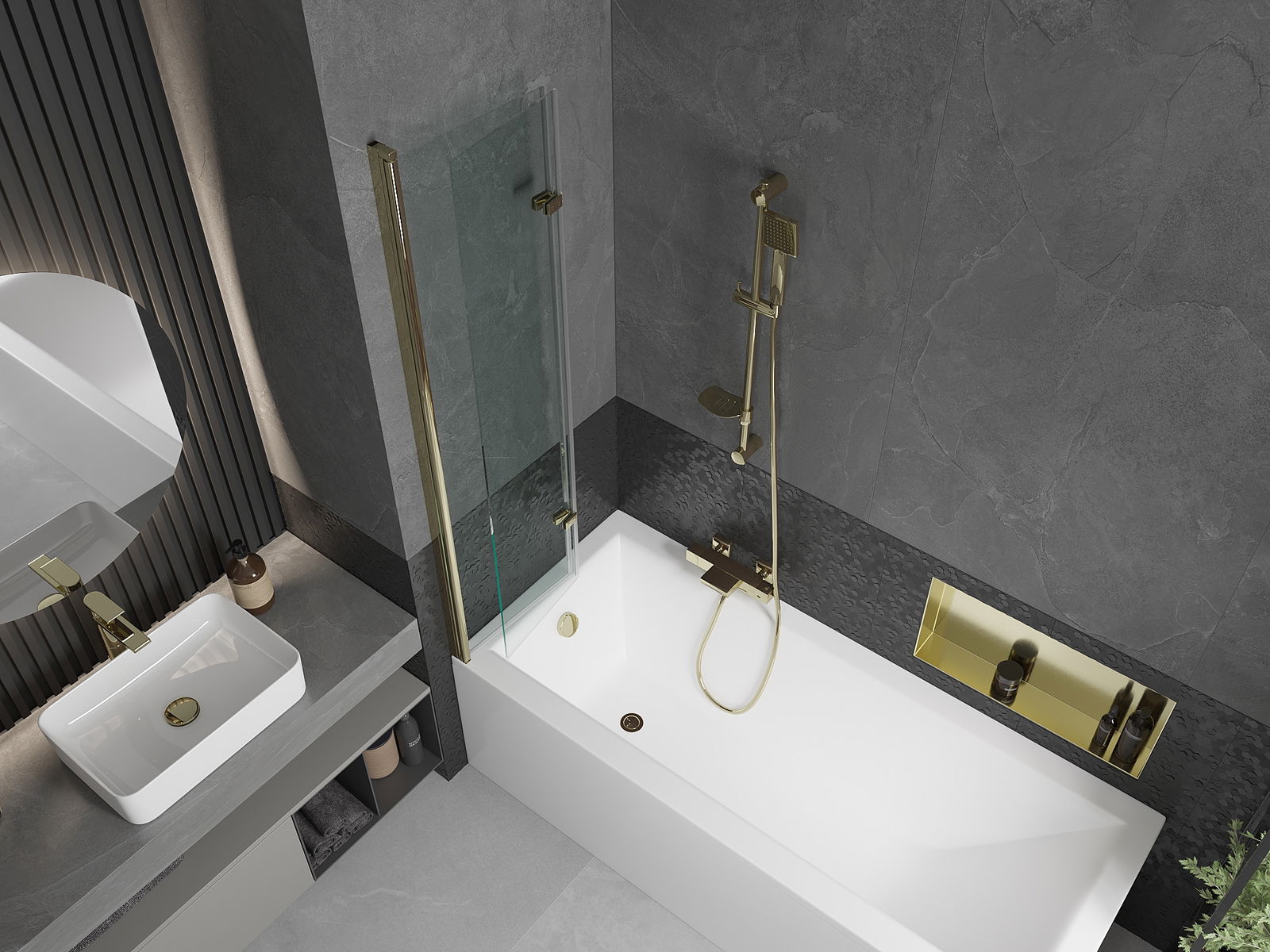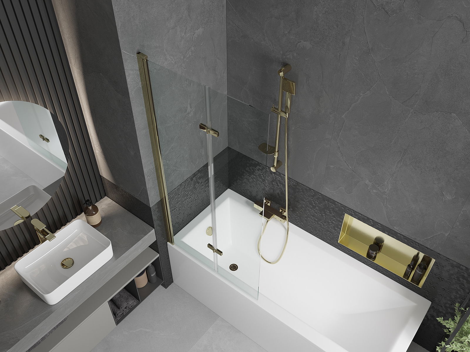 Екранът е направен от две крила с възможност за сгъване. Това решение спестява повече място в банята и ви позволява свободно да използвате останалото пространство, когато не използваме зоната за къпане.
