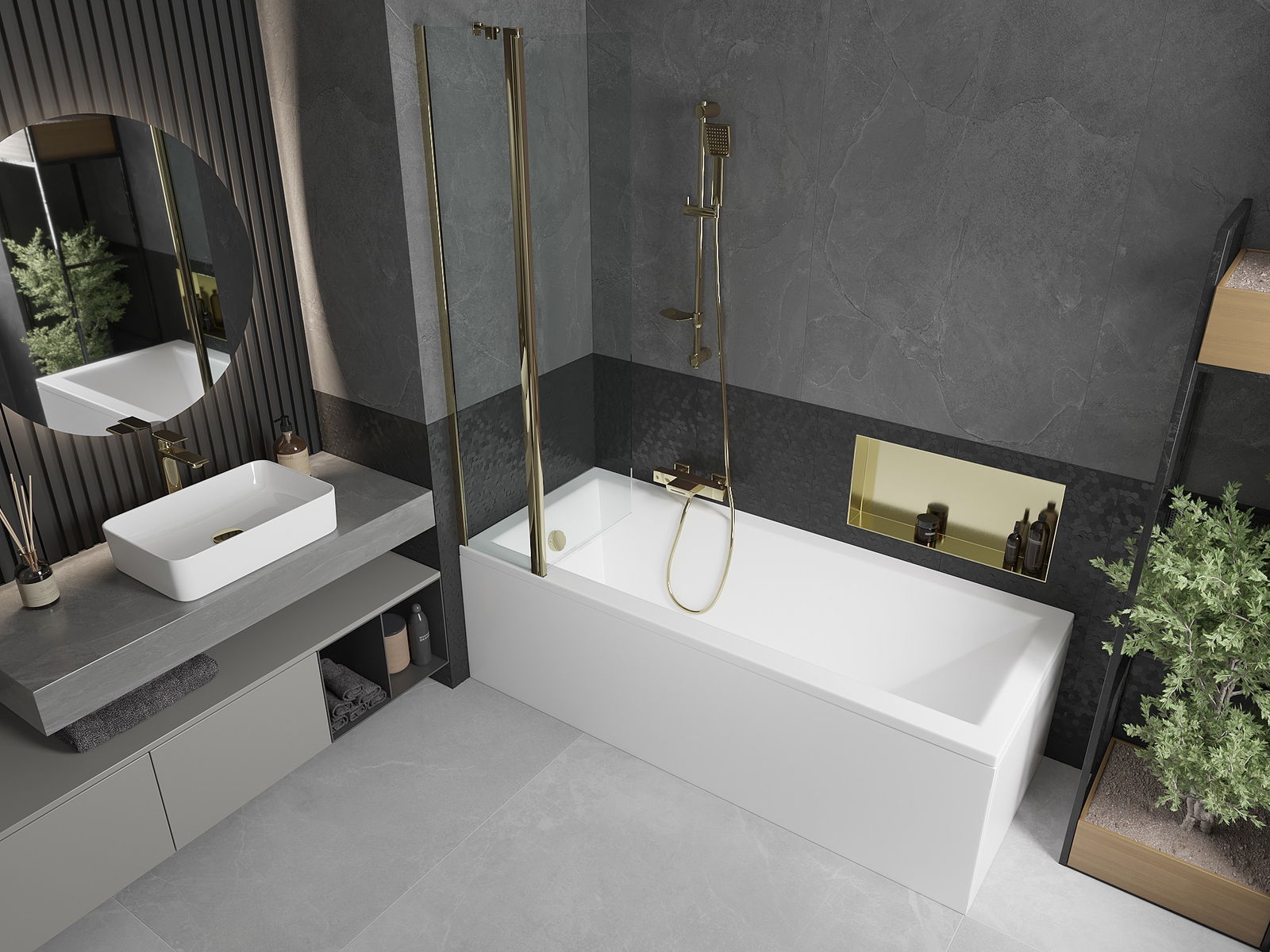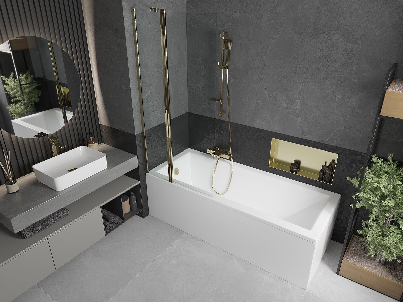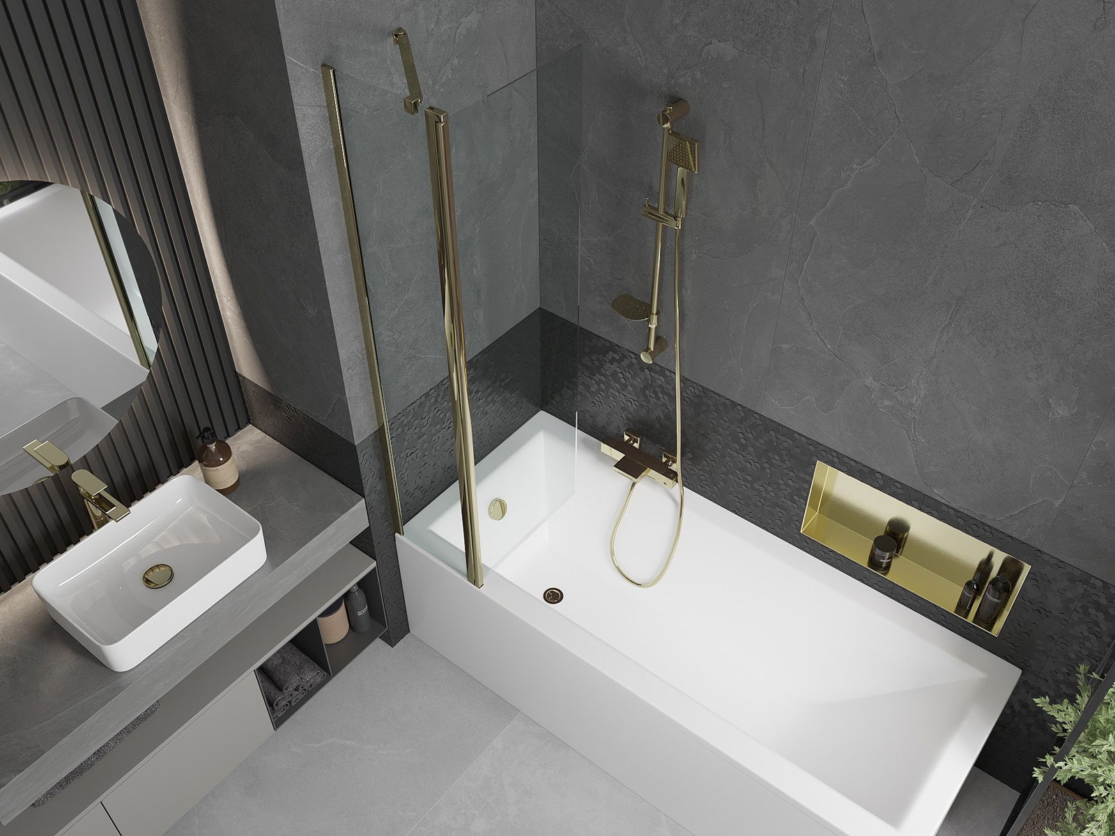 Mexen Flip параван за вана от 2 части 80 x 150 см, прозрачен, златист - 894-080-101-50-00