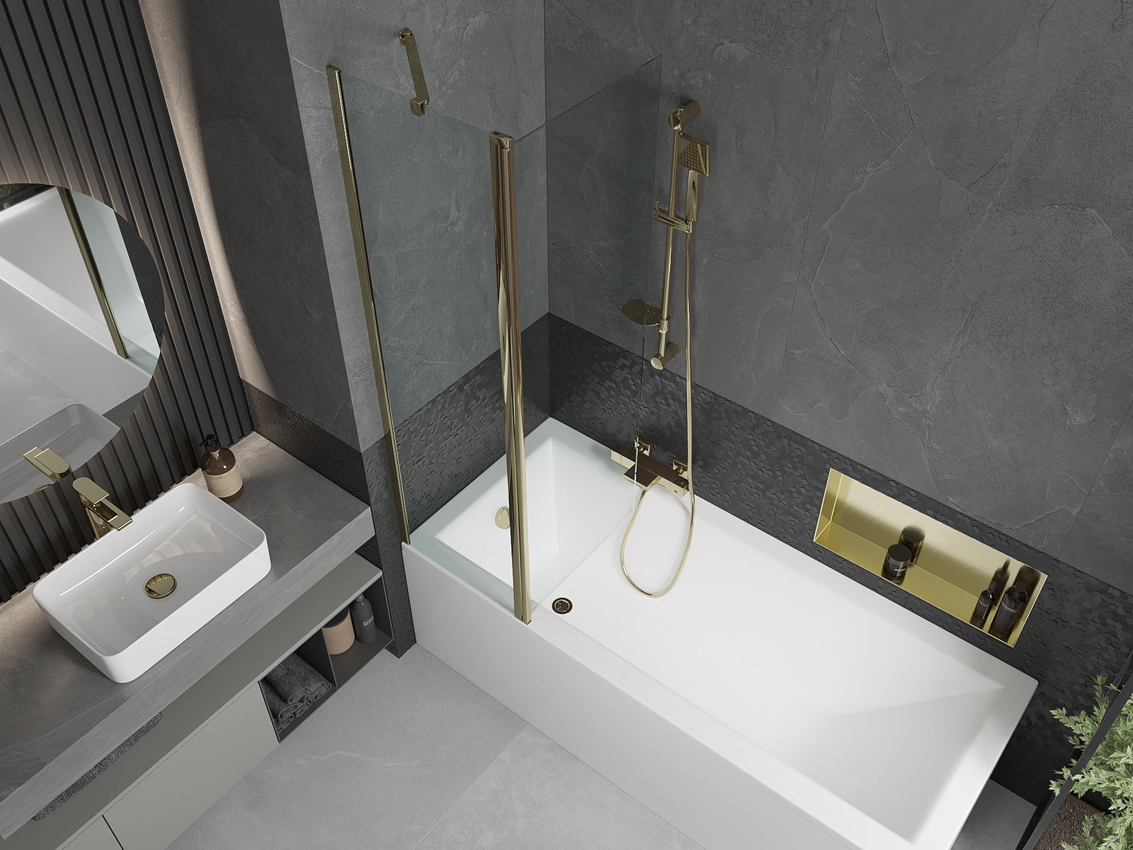 Mexen Flip параван за баня, 2-крилен 100 x 150 см, прозрачен, златен - 894-100-101-50-00