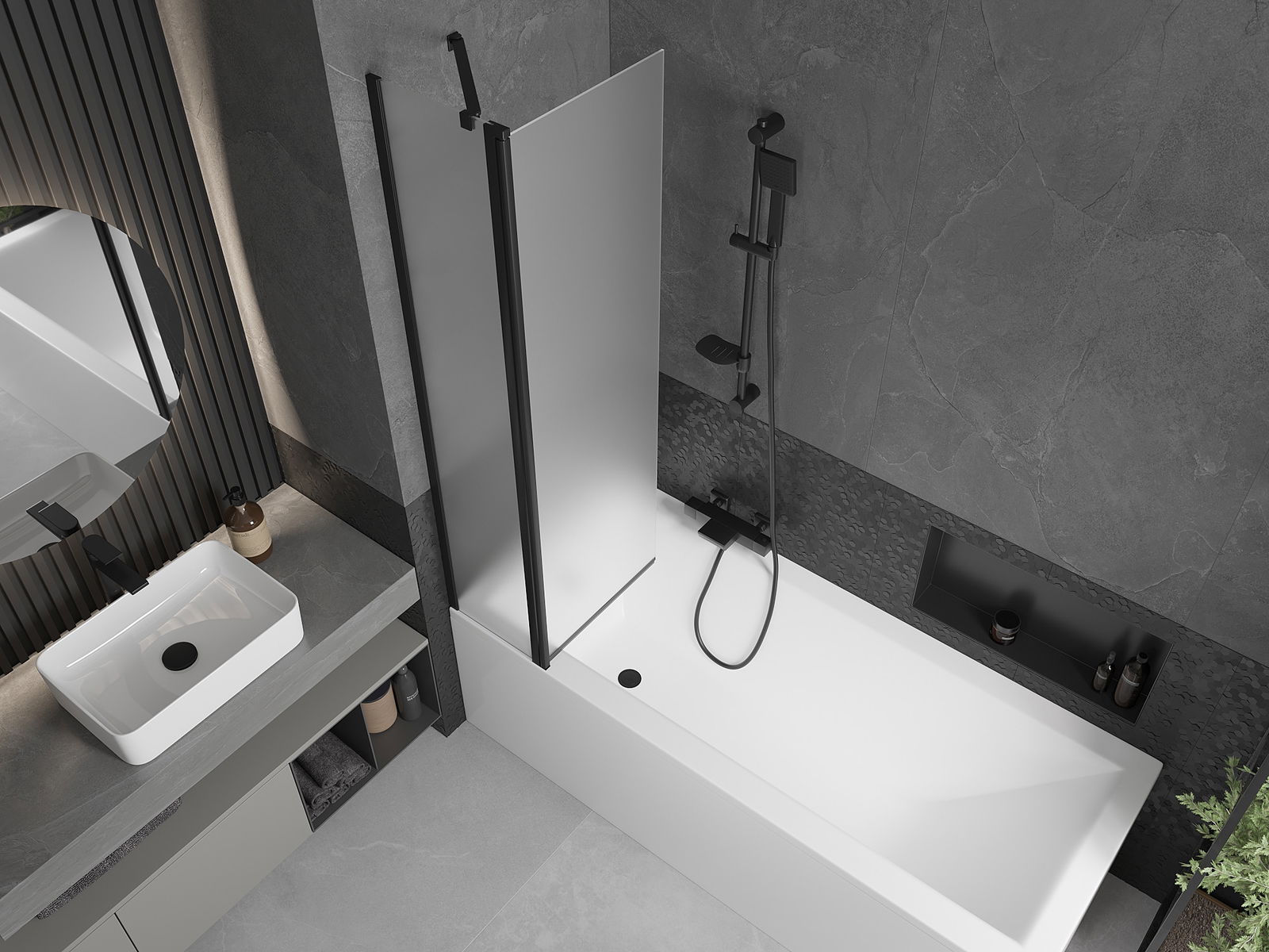 Екранът има едно движещо се крило с възможност за сгъване. Това решение спестява повече място в банята и ви позволява свободно да използвате останалото пространство, когато не използваме зоната за къпане.