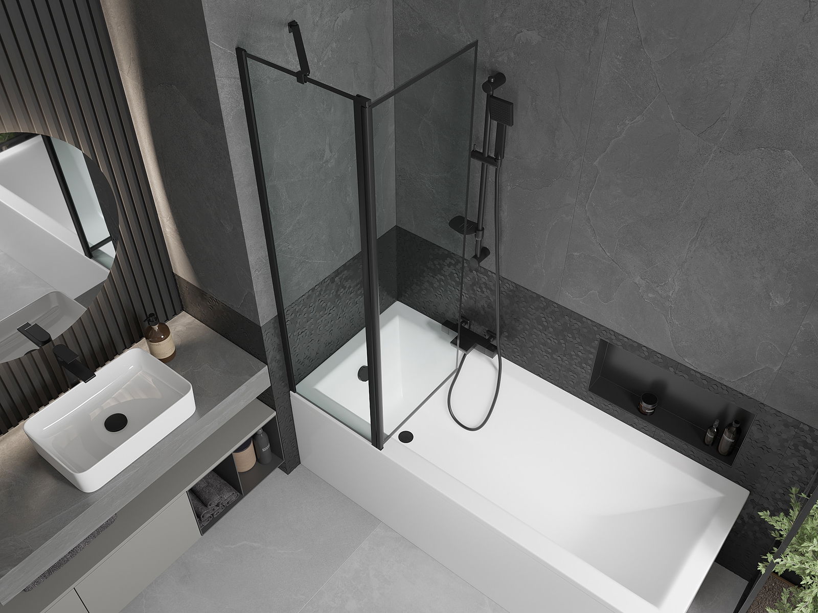 Екранът има едно движещо се крило с възможност за сгъване. Това решение спестява повече място в банята и ви позволява свободно да използвате останалото пространство, когато не използваме зоната за къпане.