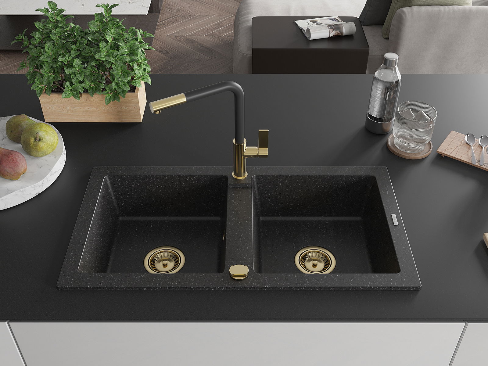 Мивката е направена от висококачествен гранит. Това е елегантно и най -вече практично допълнение към всяка кухня, независимо от нейния стил. Висококачествената и гранитна издръжливост осигуряват много години употреба.