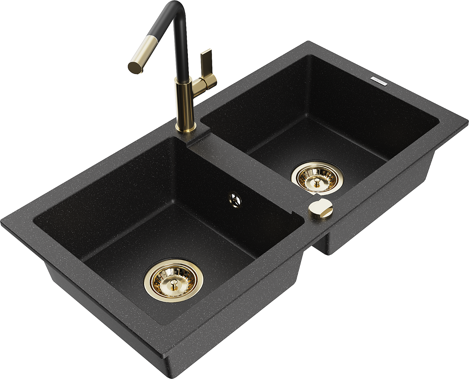 Mexen Mario двоен мивка от гранит с кухненски кран Flora, черен/сребърен металик - 6504-73-670401-57-G