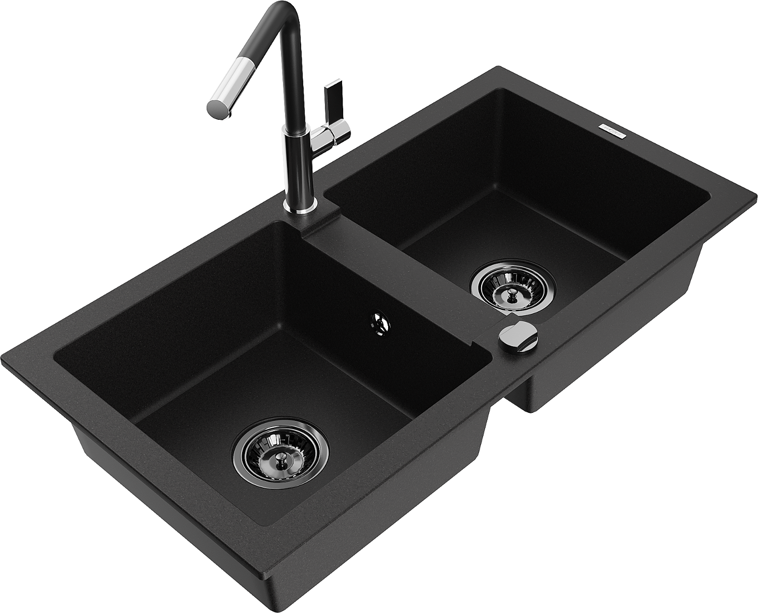 Mexen Mario гранитна кухненска мивка с 2 отделения и кухненски смесител Flora, черен - 6504-77-670401-07-B
