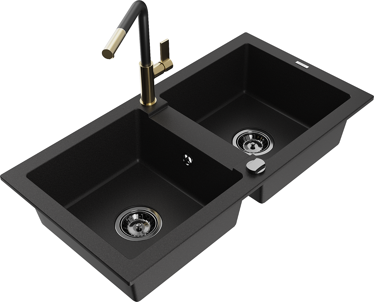 Mexen Mario двукоморна кухненска мивка от гранит с кухненски смесител Flora, черен - 6504-77-670401-57-B