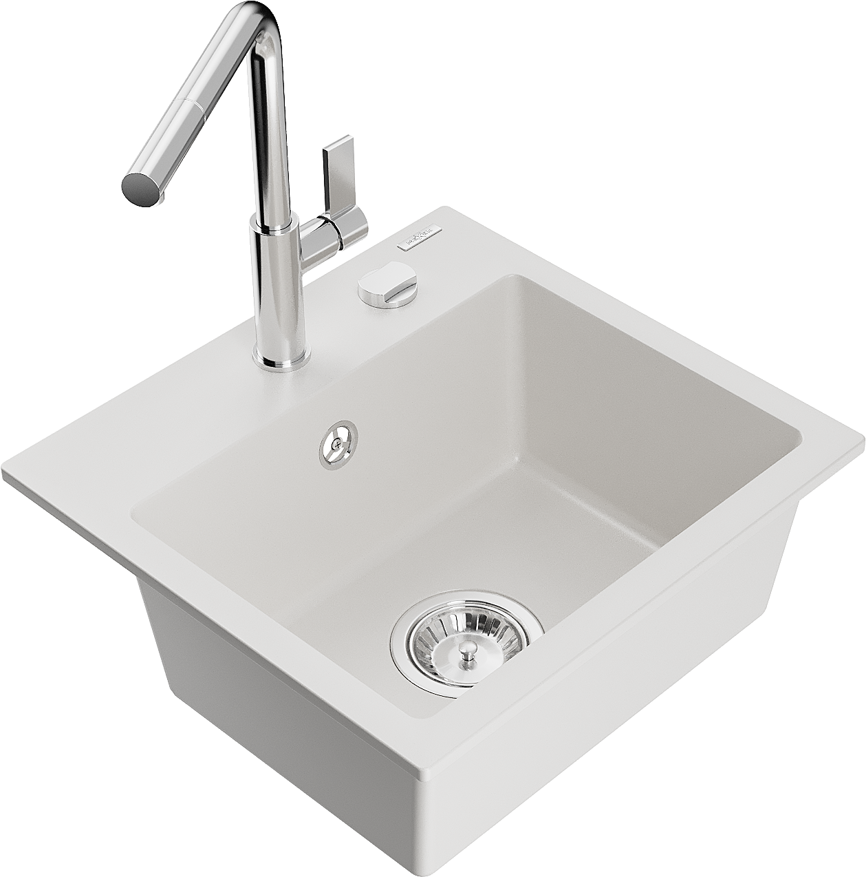 Mexen Milo гранитна кухненска мивка с 1 отделение с кухненски смесител Flora, бял - 6505-20-670401-00