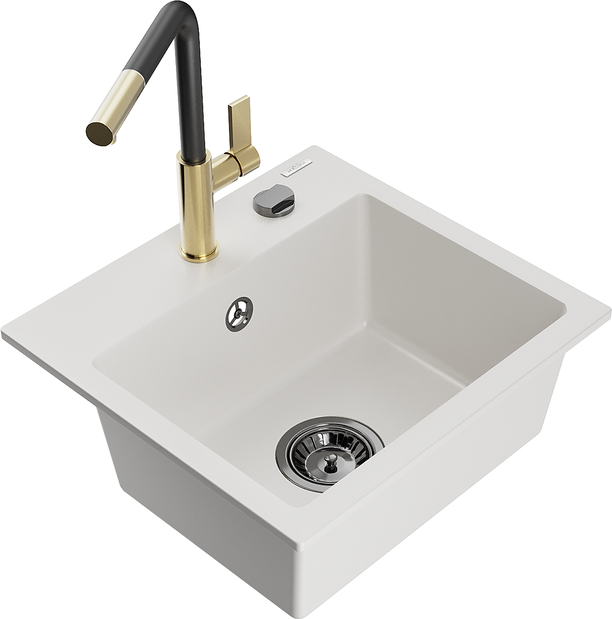 Mexen Milo гранитна мивка с 1 отделение с кухненски смесител Flora, бял - 6505-20-670401-57-B