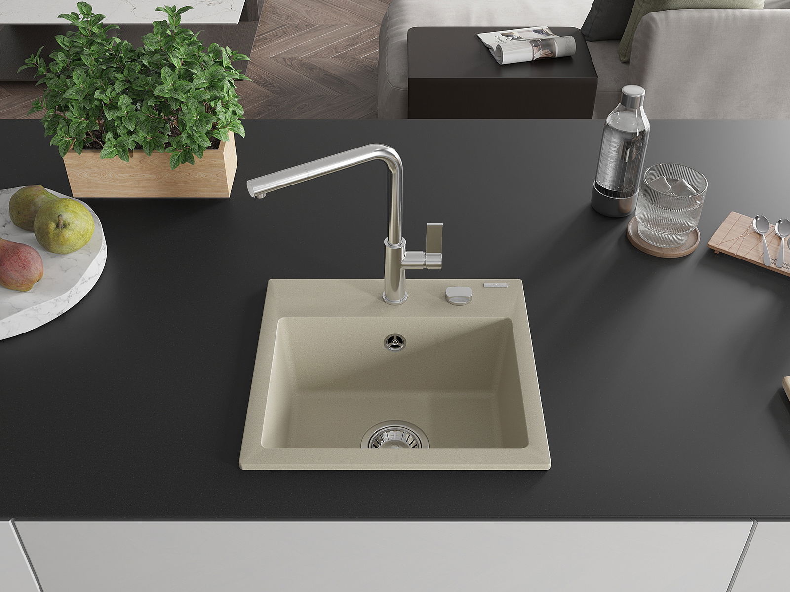 Повърхността на мивката е устойчива на петна и оцветявания, благодарение на което е лесна за поддържане на чистота и запазва цвета си за дълго време на употреба. Естетично и практично допълнение към всяка кухня.