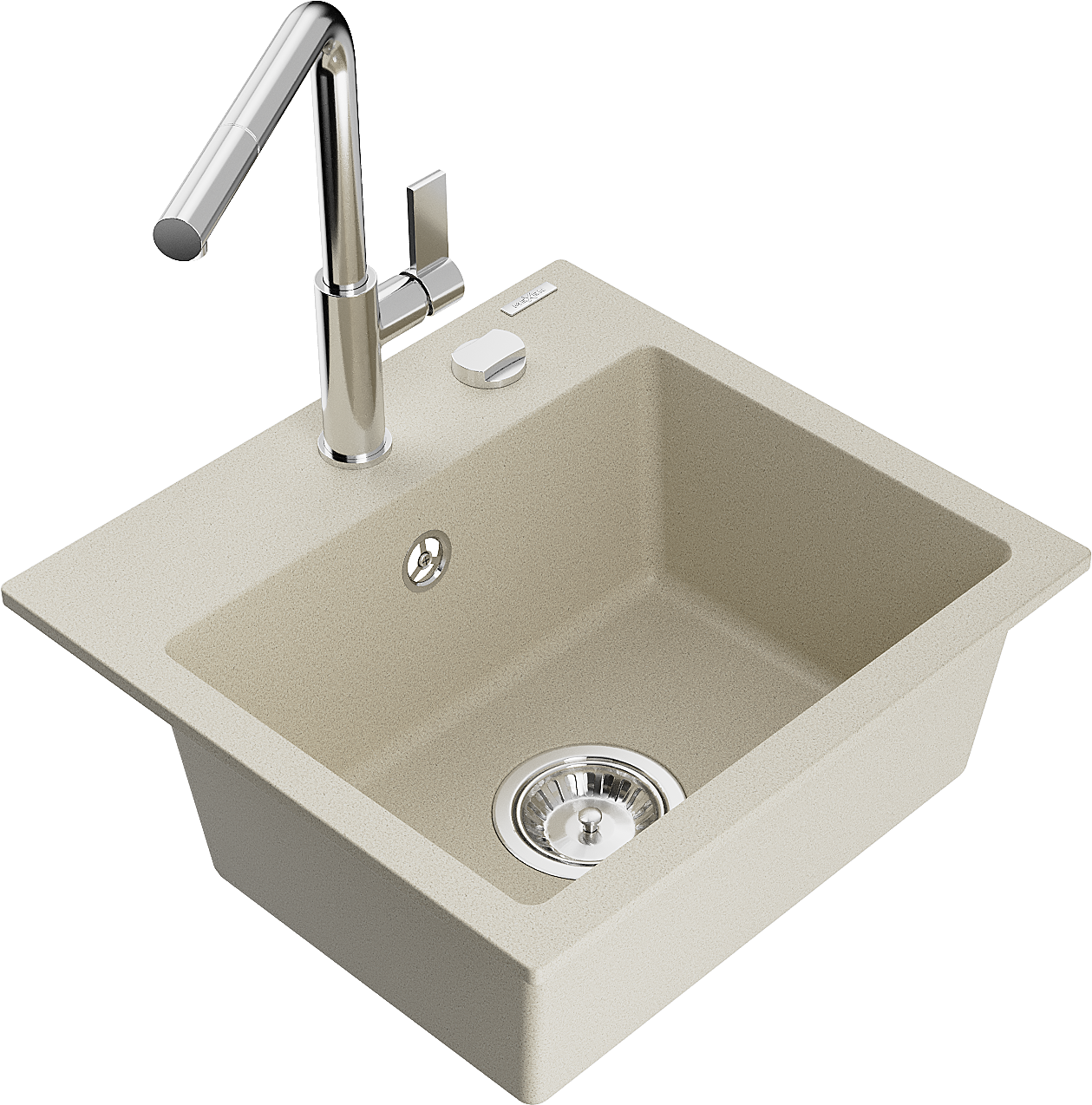 Mexen Milo кухненска мивка от гранит с 1 камера и кухненски смесител Flora, бежов - 6505-69-670401-00