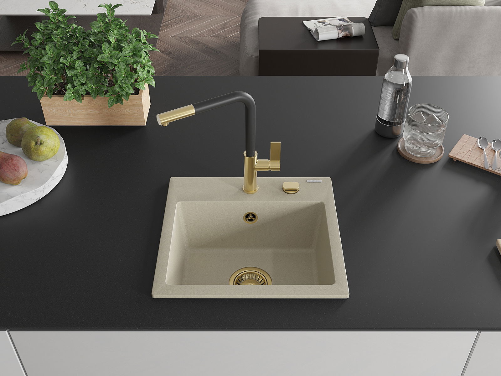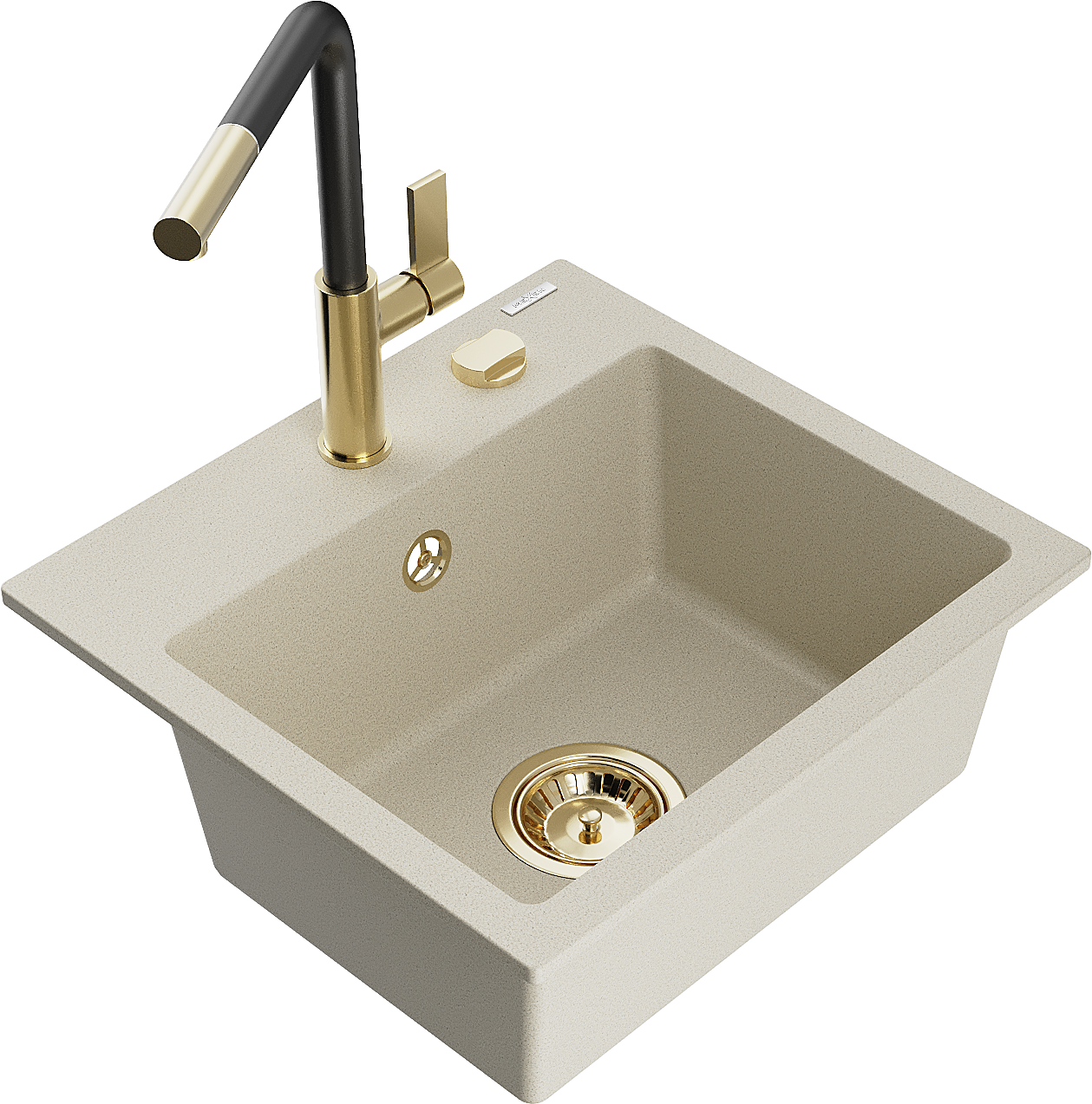 Mexen Milo мивка гранитна 1-камерна с кухненски батерия Flora, бежов - 6505-69-670401-57-G