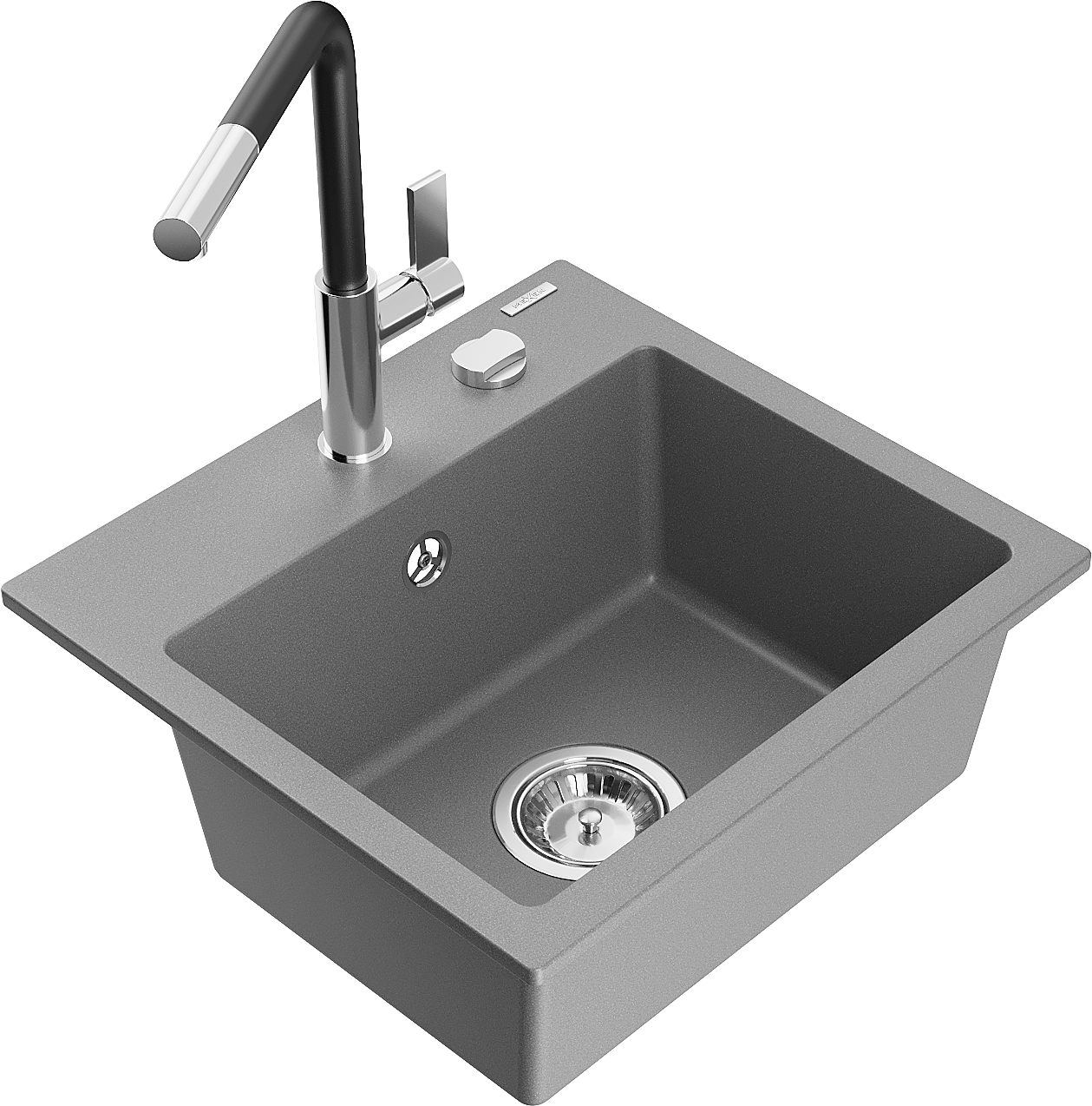 Mexen Milo мивка гранитна 1-камерна с кухненски смесител Flora, сива - 6505-71-670401-07