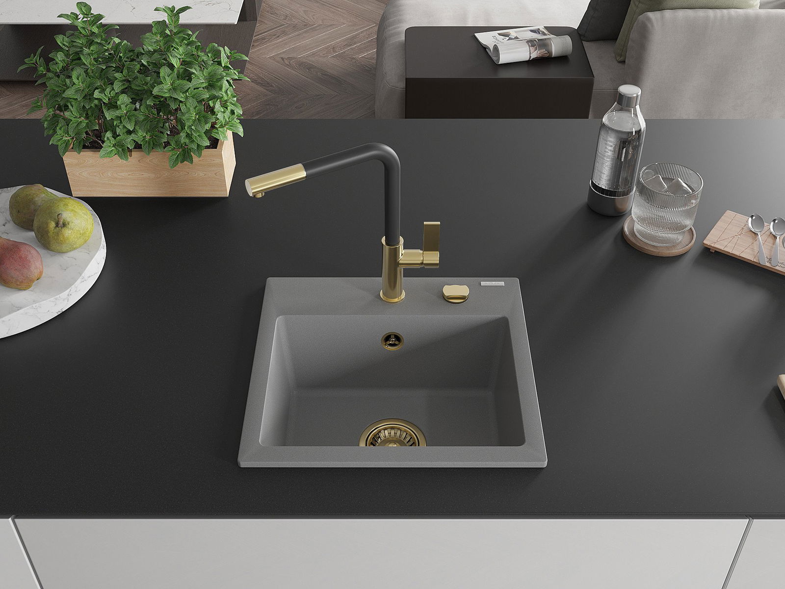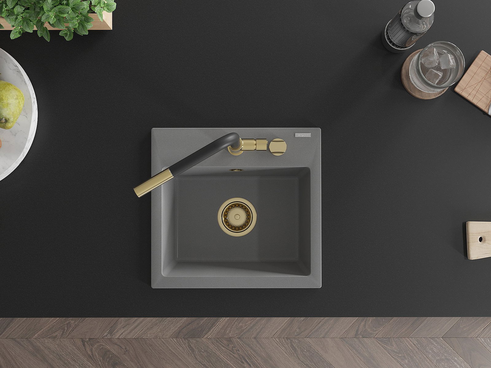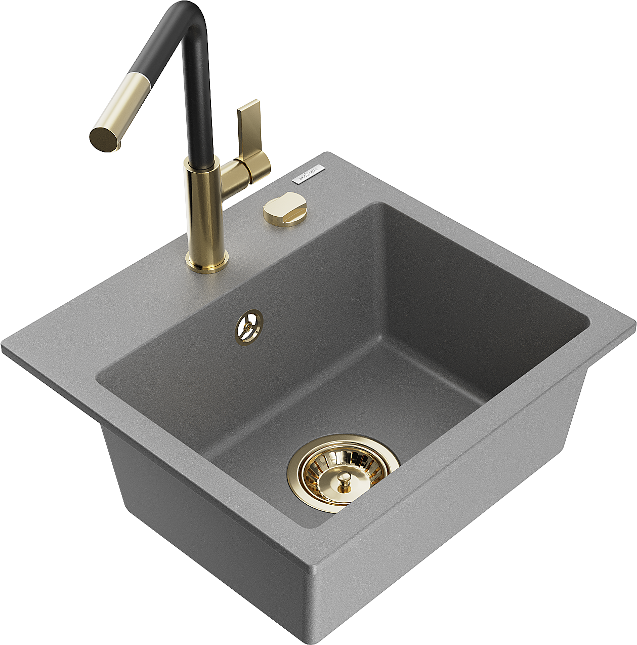 Mexen Milo гранитна мивка с едно корито с кухненски смесител Flora, сив