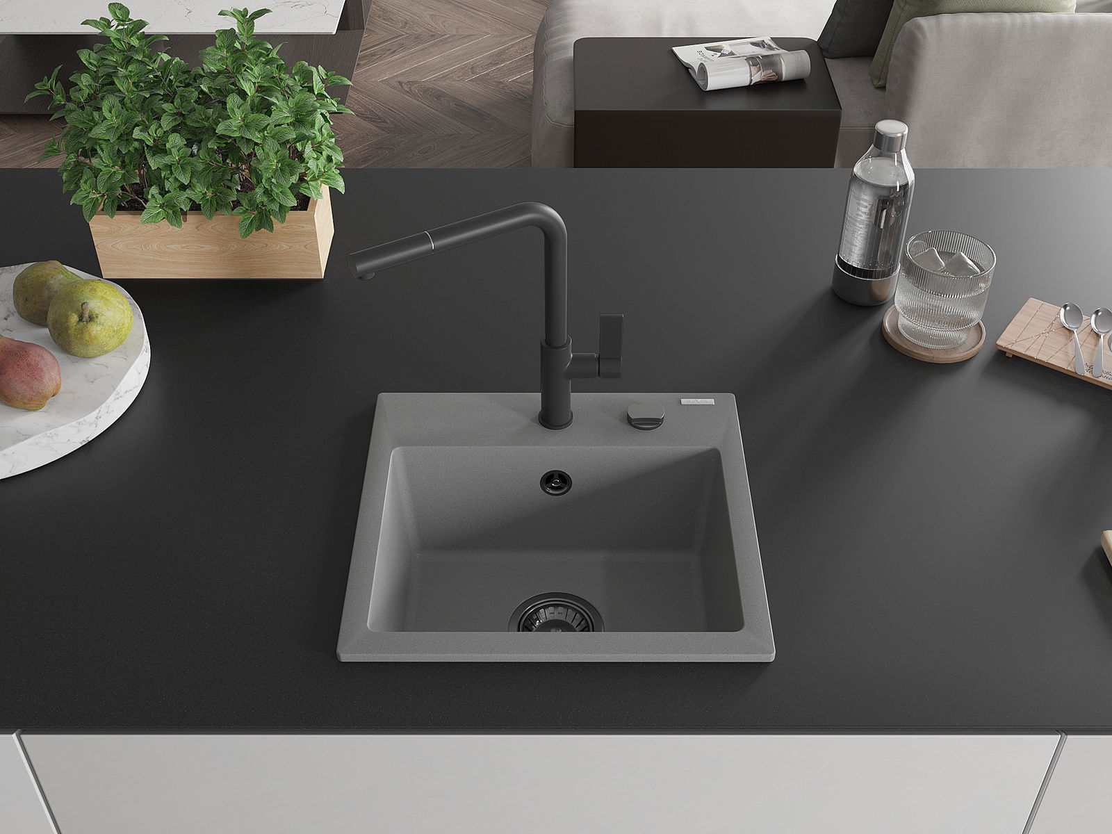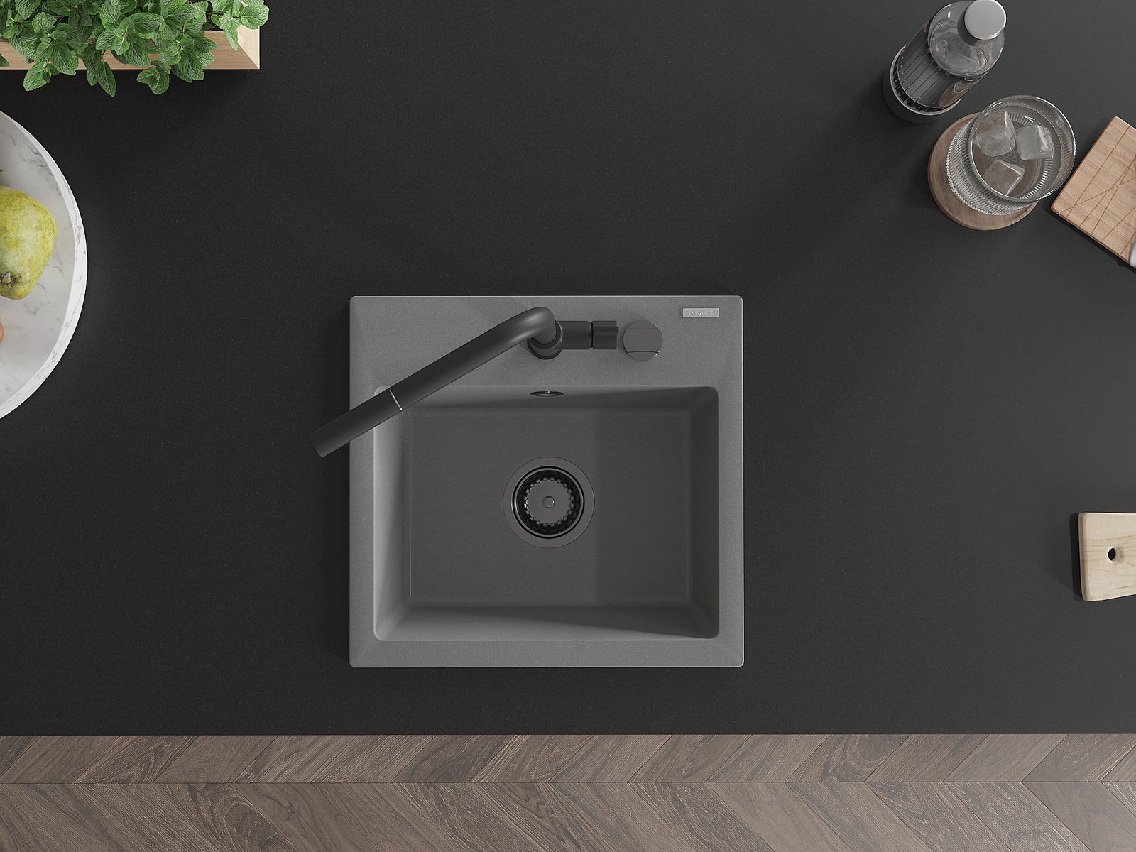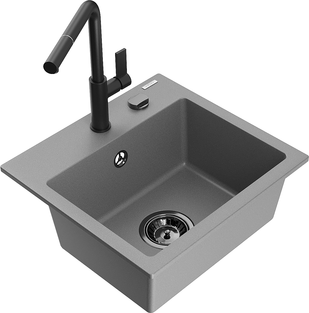 Mexen Milo гранитна мивка с 1 камера с кухненски смесител Flora, сива