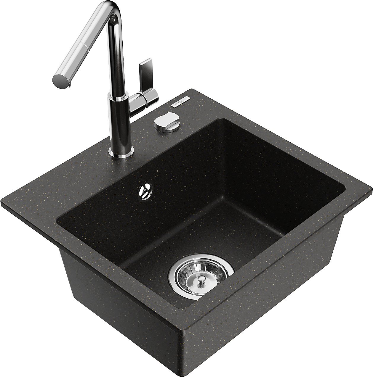 Mexen Milo гранитна мивка с 1 отделение и кухненски смесител Flora, черен/златист металик - 6505-75-670401-00