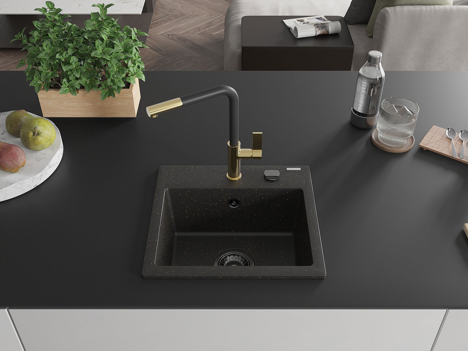 Мивката е направена от висококачествен гранит. Това е елегантно и най -вече практично допълнение към всяка кухня, независимо от нейния стил. Висококачествената и гранитна издръжливост осигуряват много години употреба.