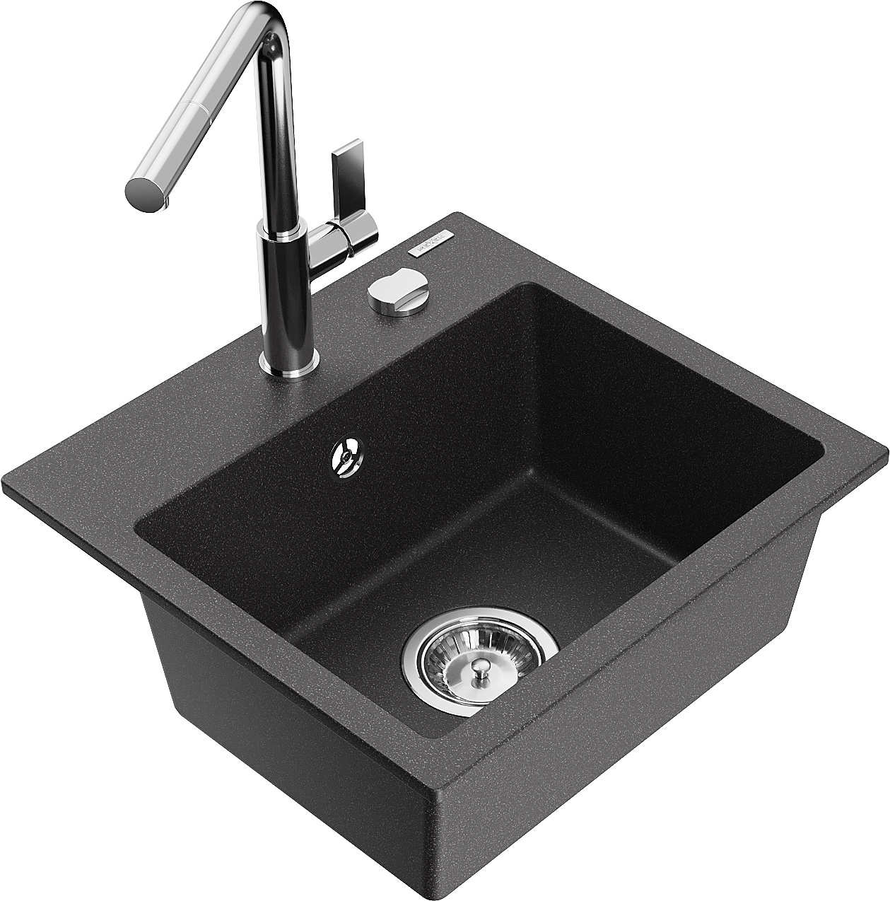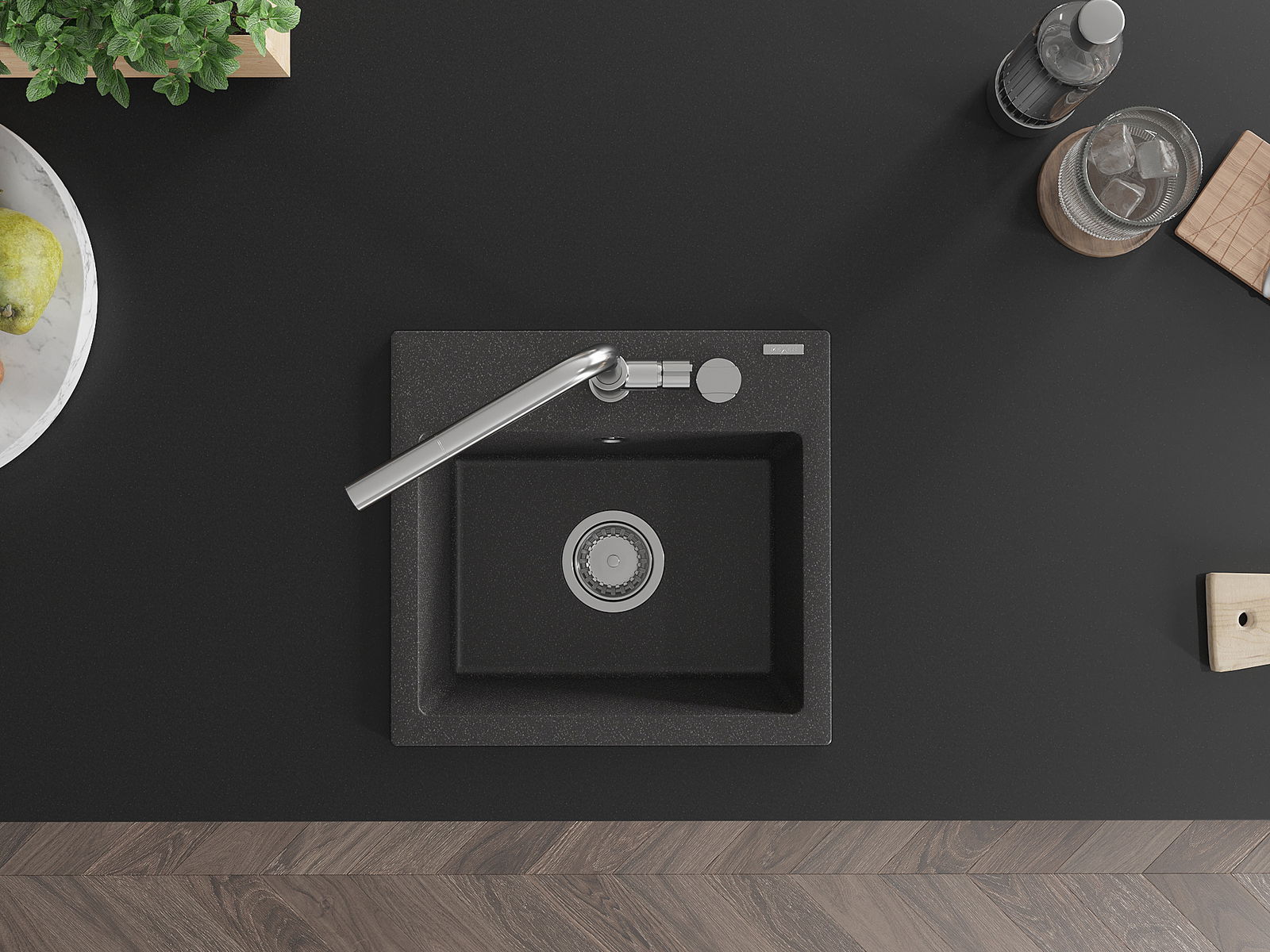 Mexen Milo гранитна мивка с 1 отделение с кухненски смесител Flora, черен на пръски - 6505-76-670401-00