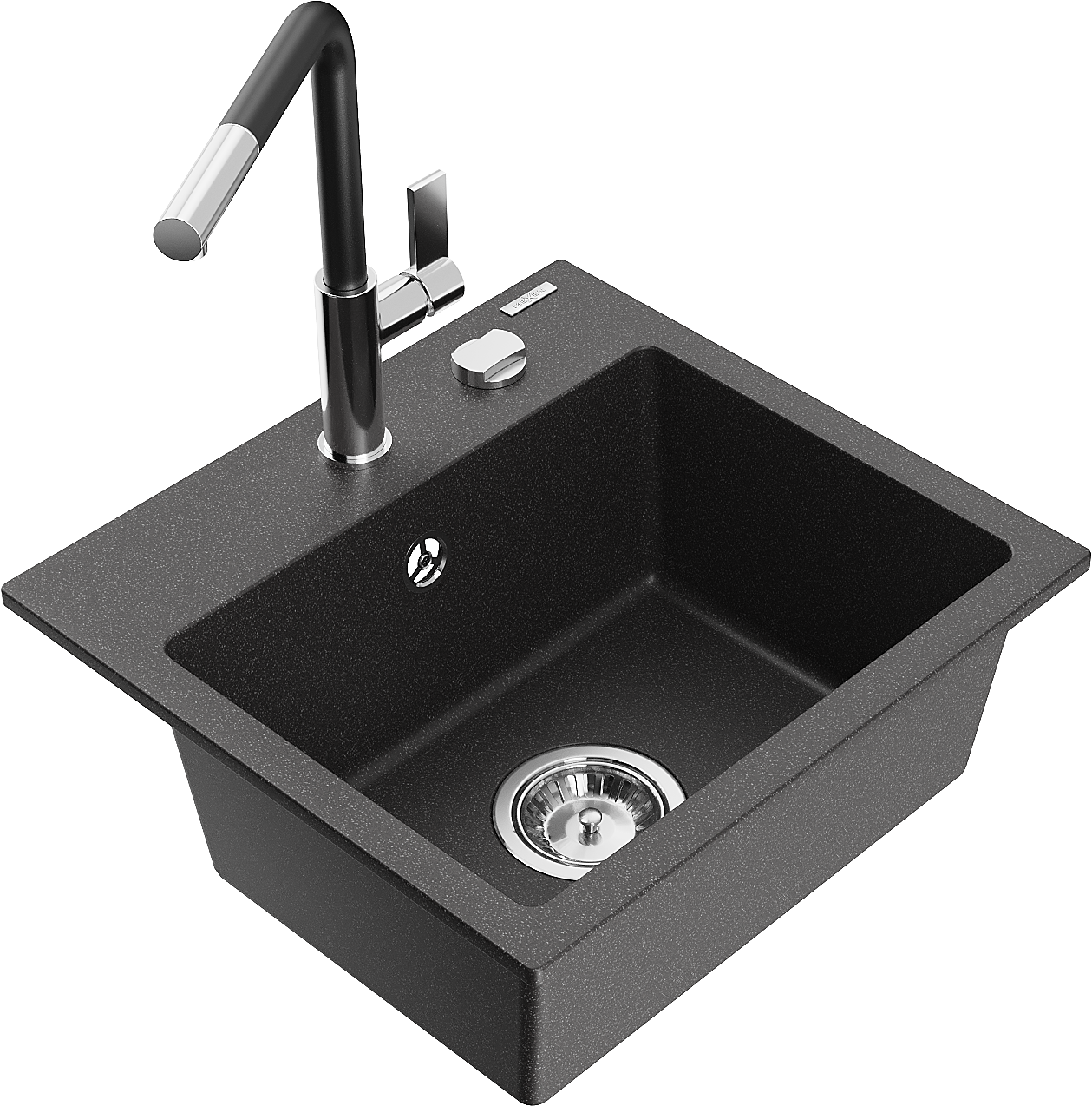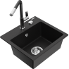 Mexen Milo гранитна мивка с 1 отделение и кухненски смесител Flora, черен на пръски - 6505-76-670401-07