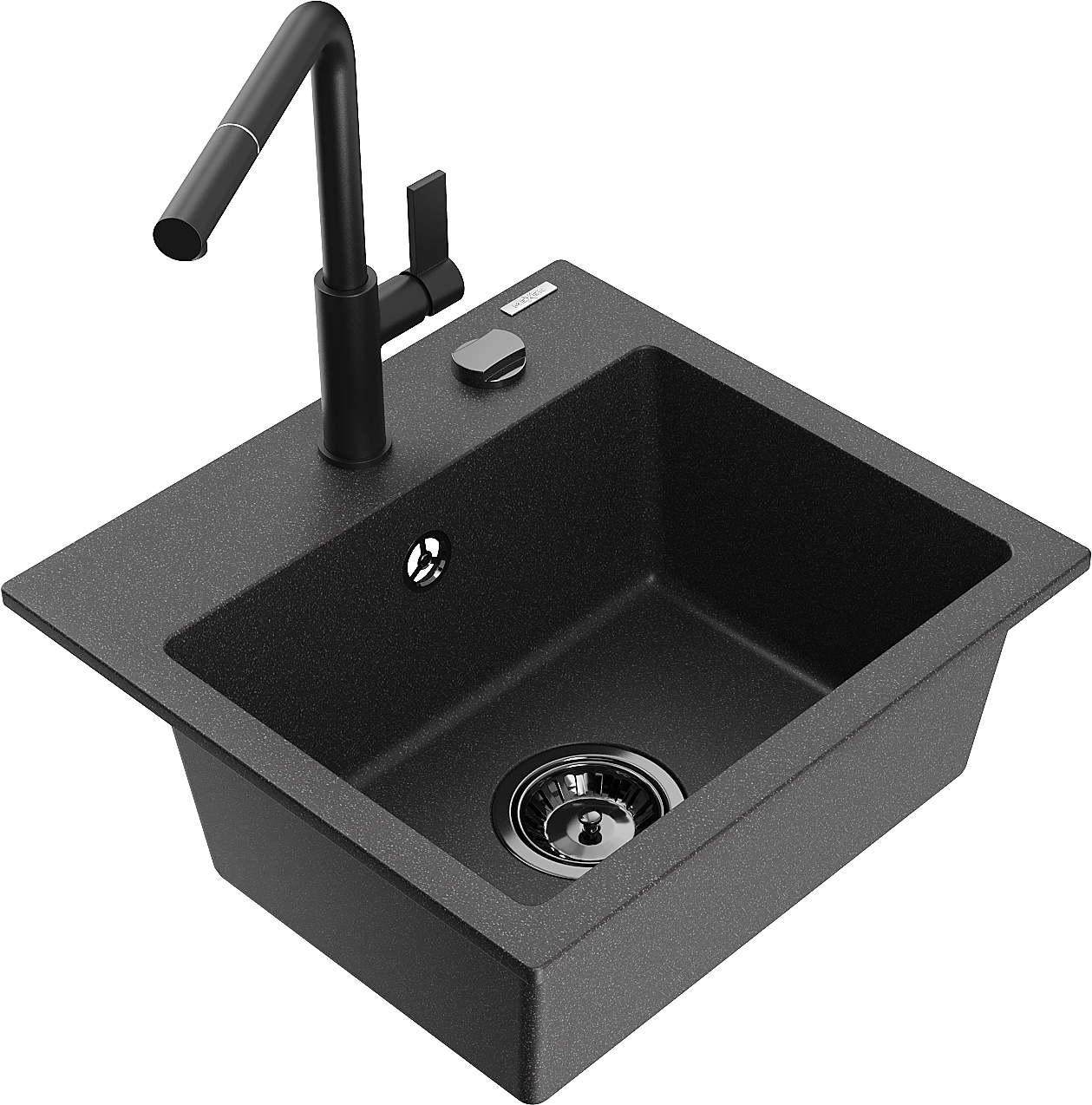 Mexen Milo мивка от гранит с 1 отделение и кухненски смесител Flora, черно на пръски - 6505-76-670401-70-B