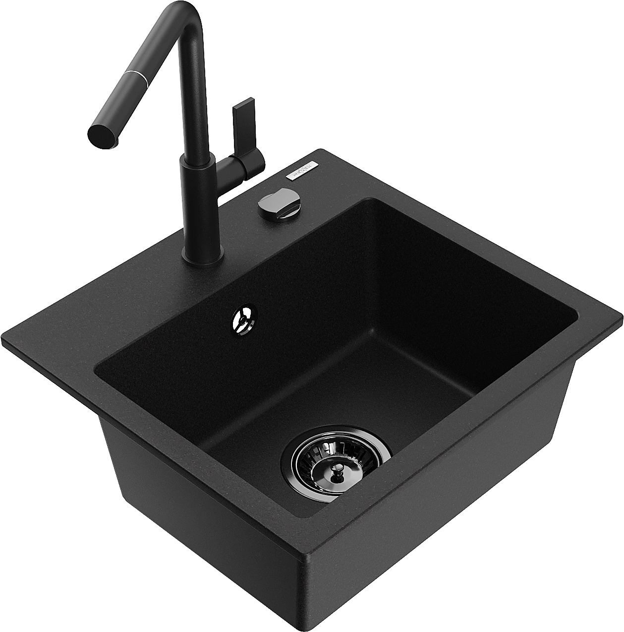 Mexen Milo кухненска мивка от гранит с 1 отделение с кухненски смесител Flora, черен - 6505-77-670401-70-B
