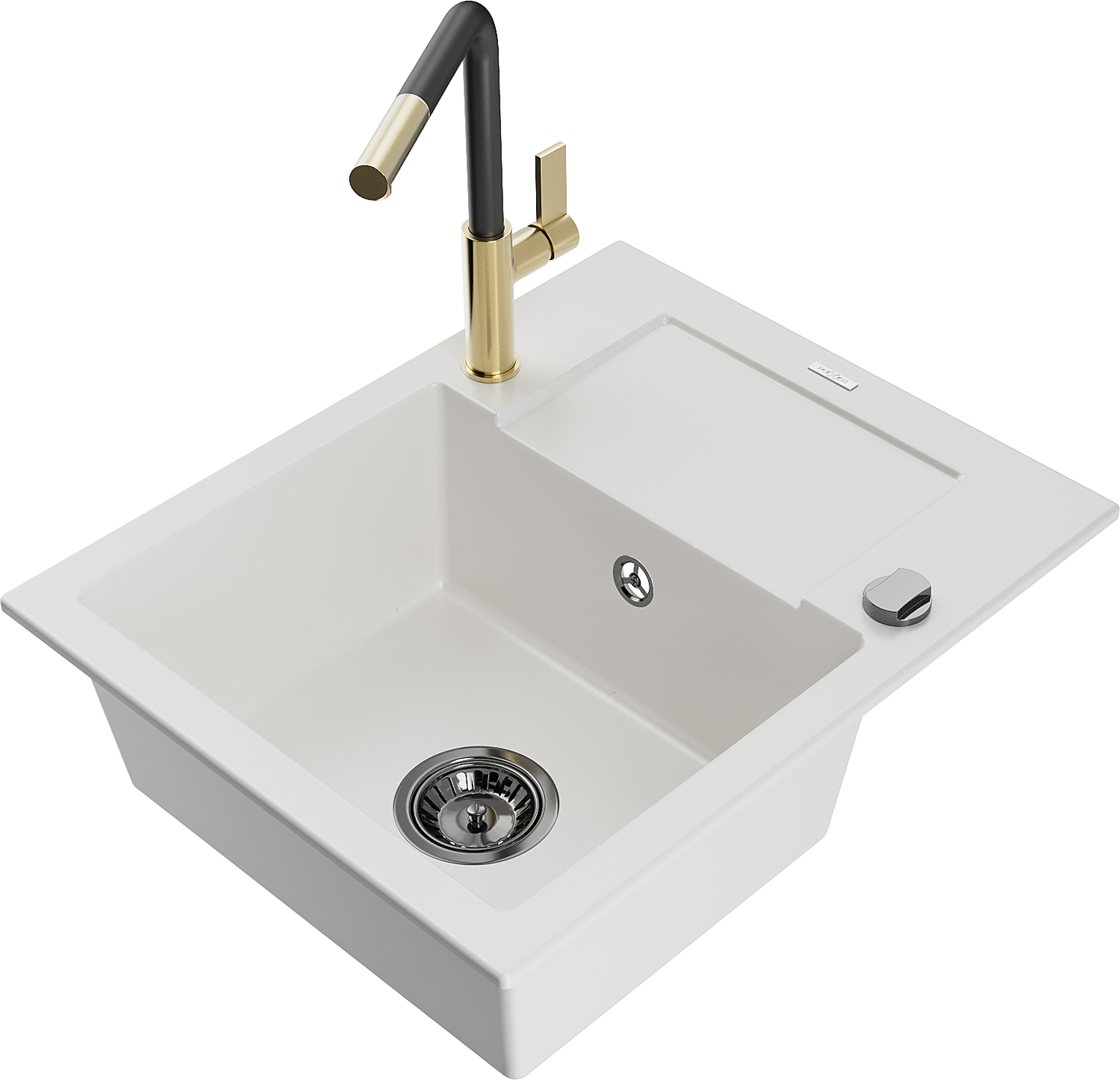 Мивка Mexen Enzo от гранит, с 1 отделение и оттичник и кухненски смесител Flora, бял - 6506-20-670401-57-B