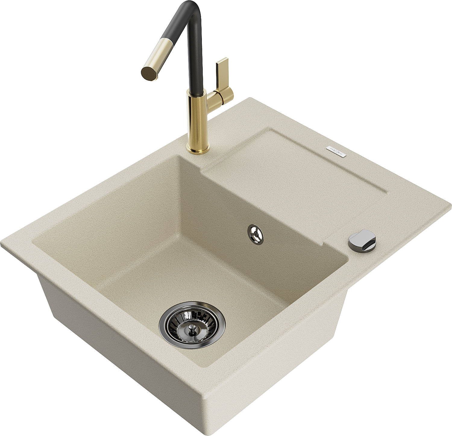 Mexen Enzo гранитна мивка с една камера с отцеждач и кухненски смесител Flora, бежов - 6506-69-670401-57-B