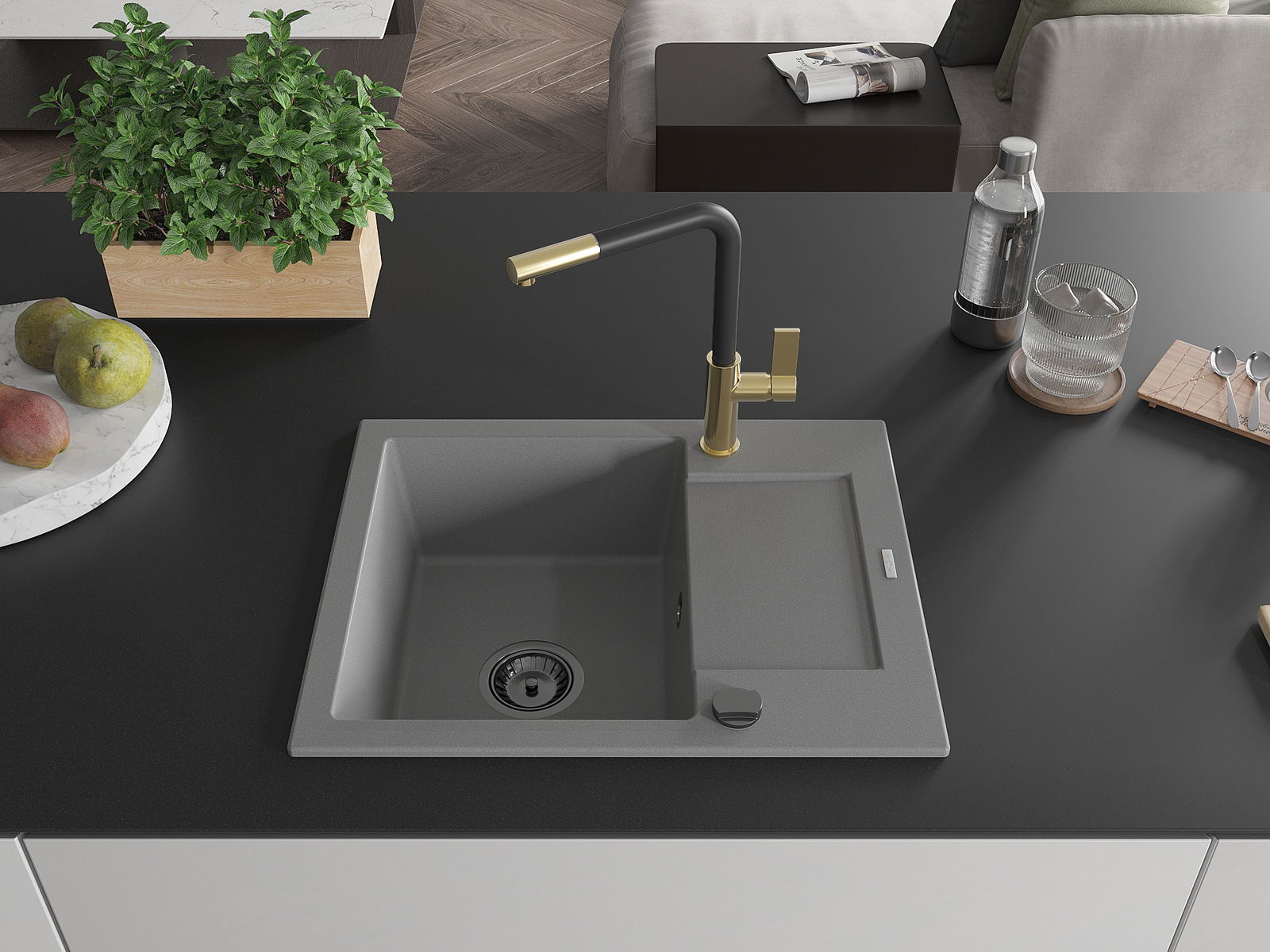 Мивката е направена от висококачествен гранит. Това е елегантно и най -вече практично допълнение към всяка кухня, независимо от нейния стил. Висококачествената и гранитна издръжливост осигуряват много години употреба.
