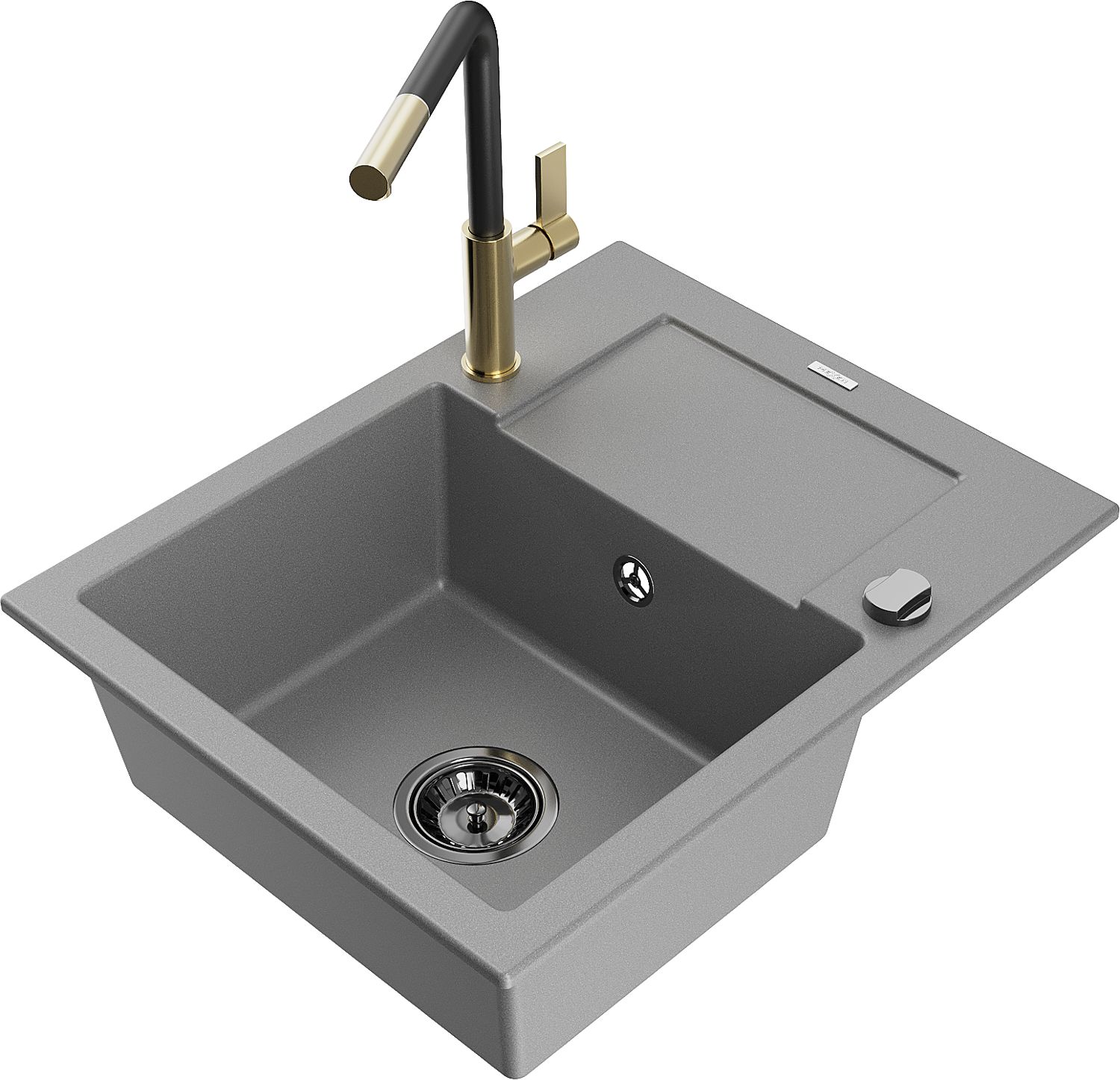 Mexen Enzo гранитна мивка с 1 камера с отцедник и кухненски смесител Flora, сив - 6506-71-670401-57-B