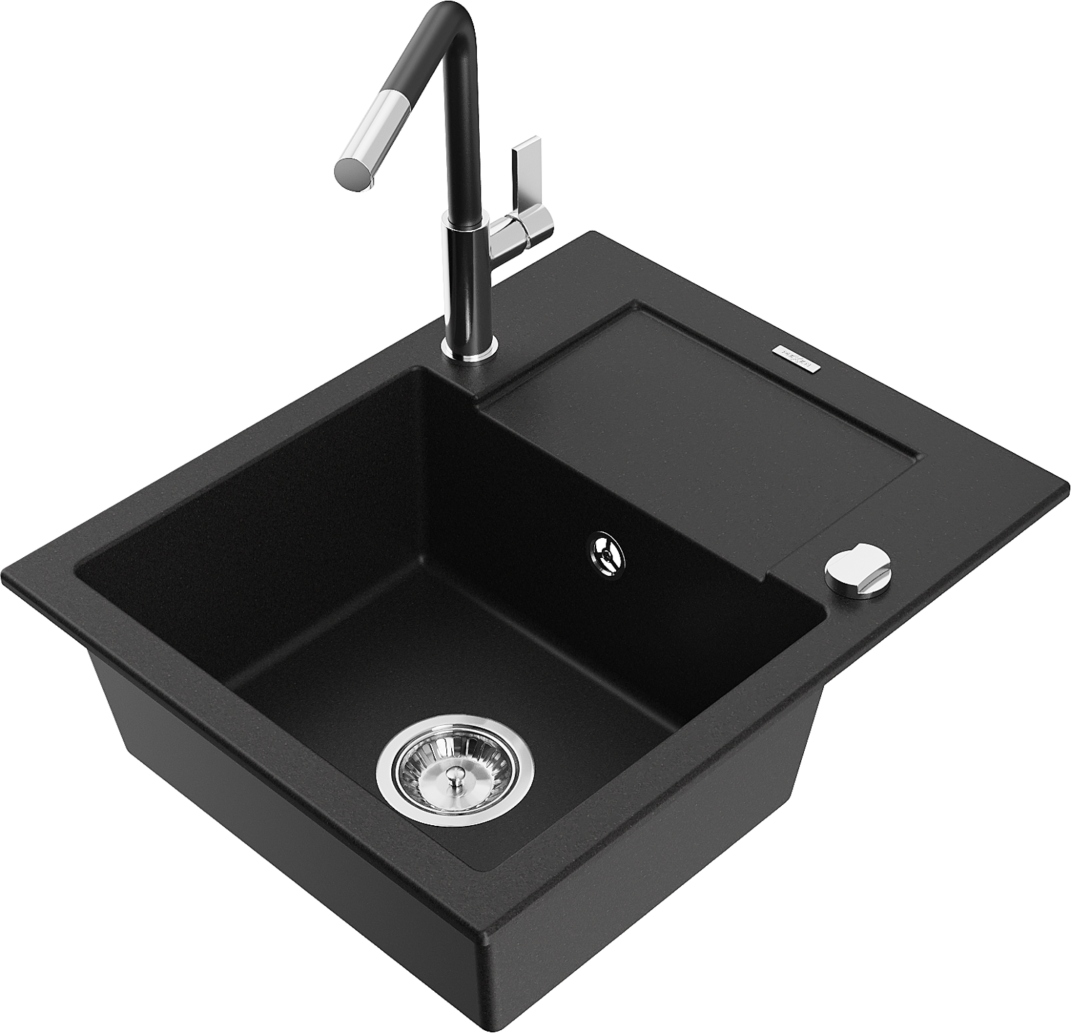 Мексе Мenzo гранитна кухненска мивка с 1 отделение и отцедник и кухненски смесител Flora, черен - 6506-77-670401-07