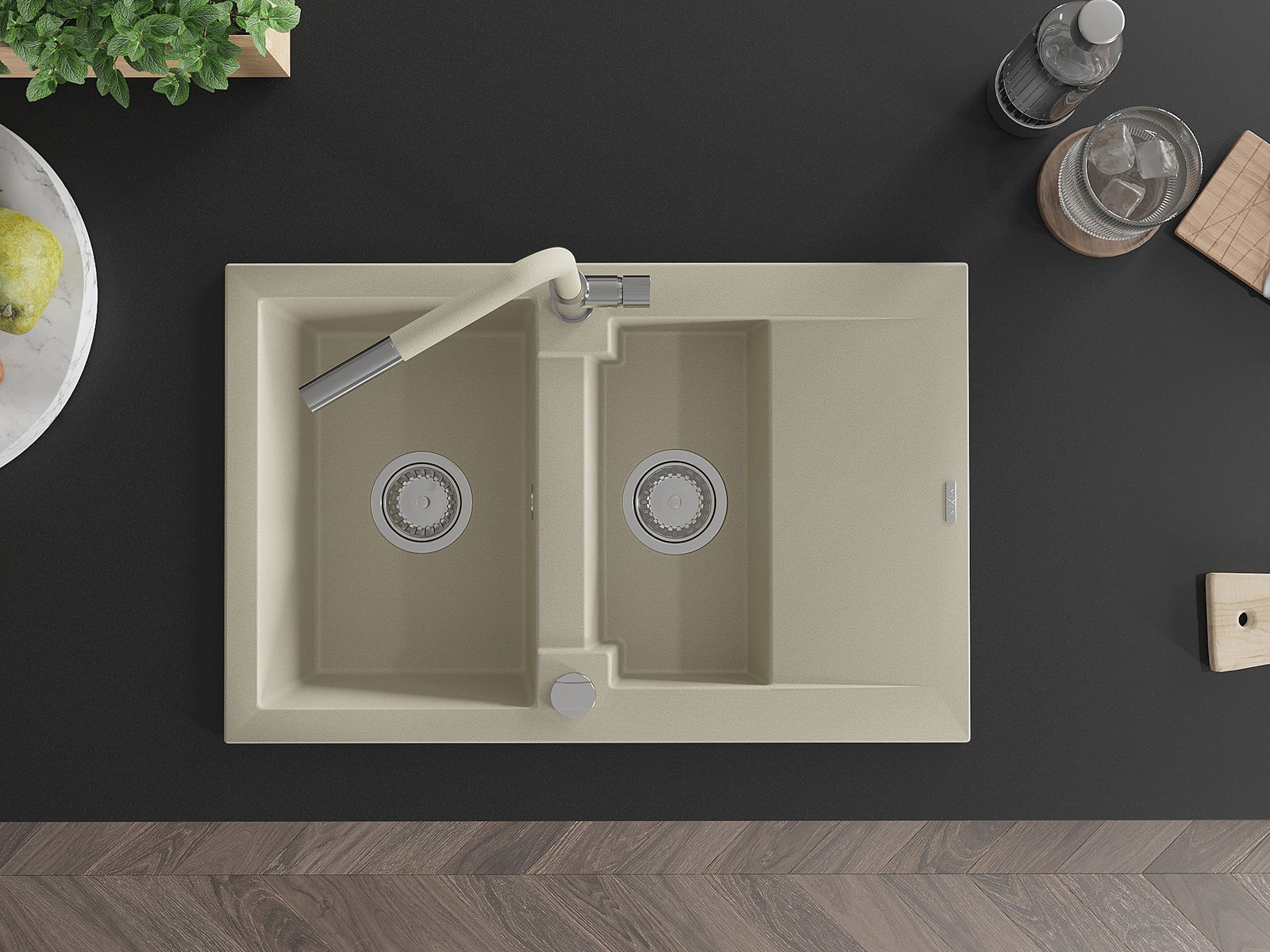 Mexen Gaspar мивка гранитна с 1,5 камери с отцедник и кухненски смесител Flora, бежов - 6507-69-670401-09
