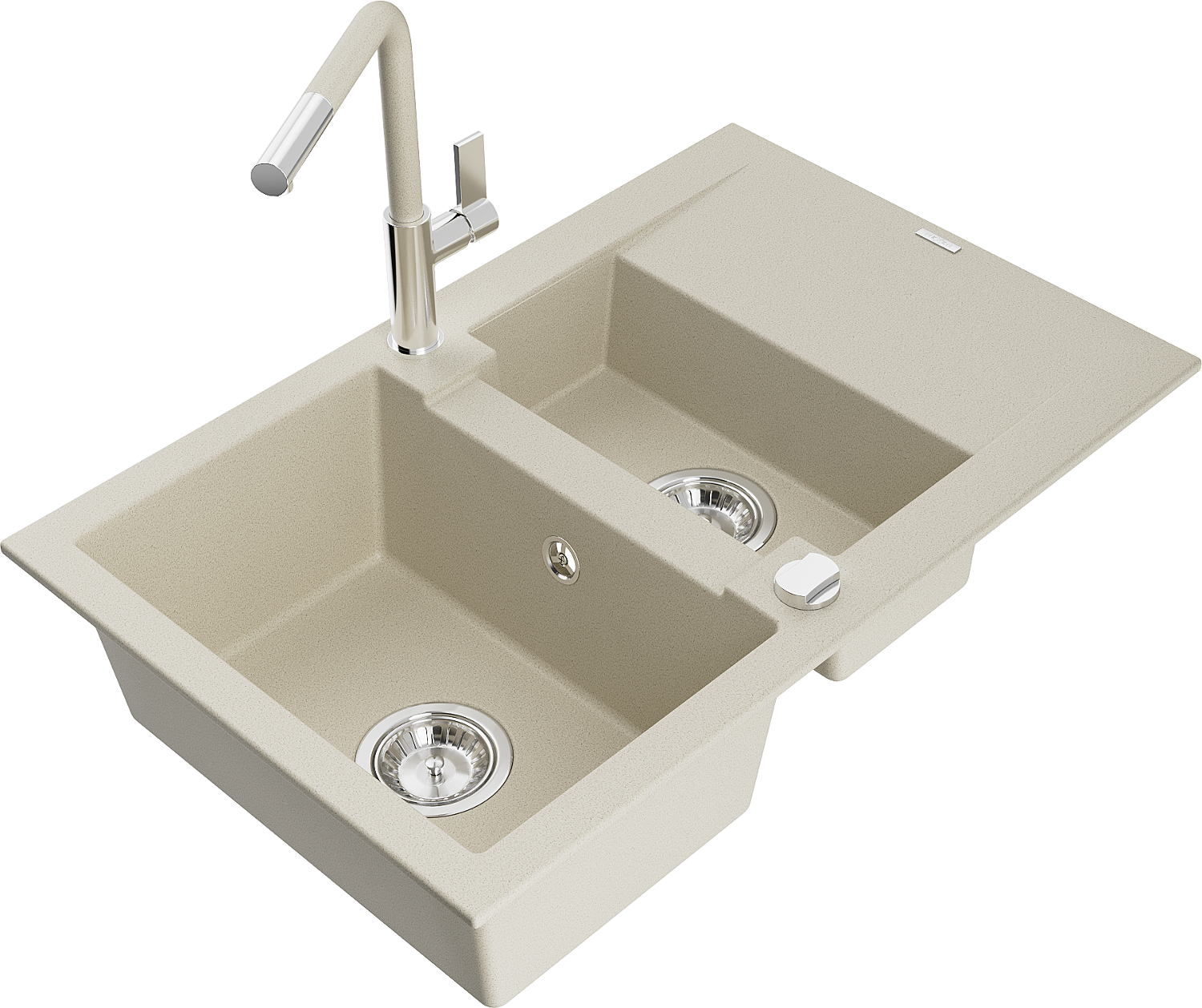 Повърхността на мивката е устойчива на петна и обезцветяване, благодарение на които е лесно да се почиства и запазва цвета си за дълго време. Естетически и практически допълващи всяка кухня.