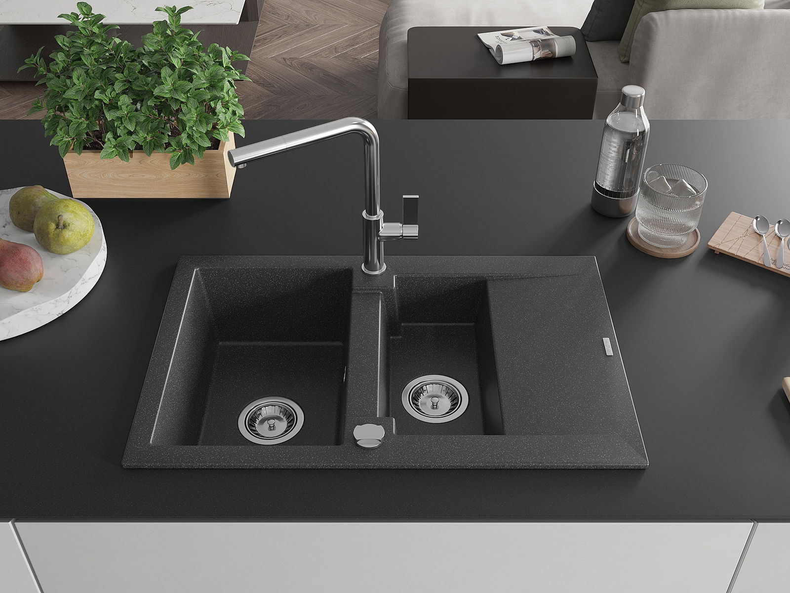 Мивката е направена от висококачествен гранит. Това е елегантно и най -вече практично допълнение към всяка кухня, независимо от нейния стил. Висококачествената и гранитна издръжливост осигуряват много години употреба.