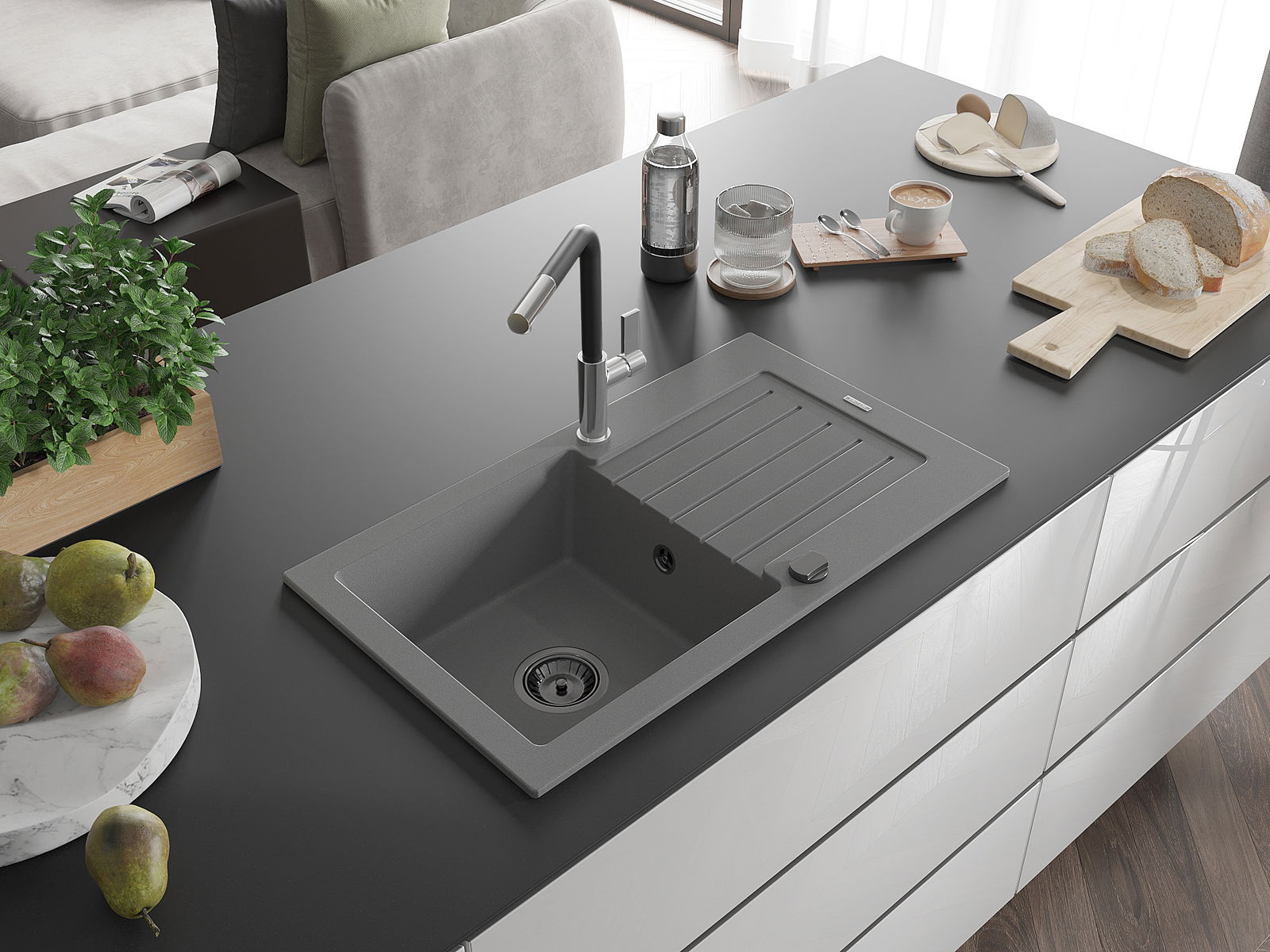 Мивката е направена от висококачествен гранит. Това е елегантно и най -вече практично допълнение към всяка кухня, независимо от нейния стил. Висококачествената и гранитна издръжливост осигуряват много години употреба.