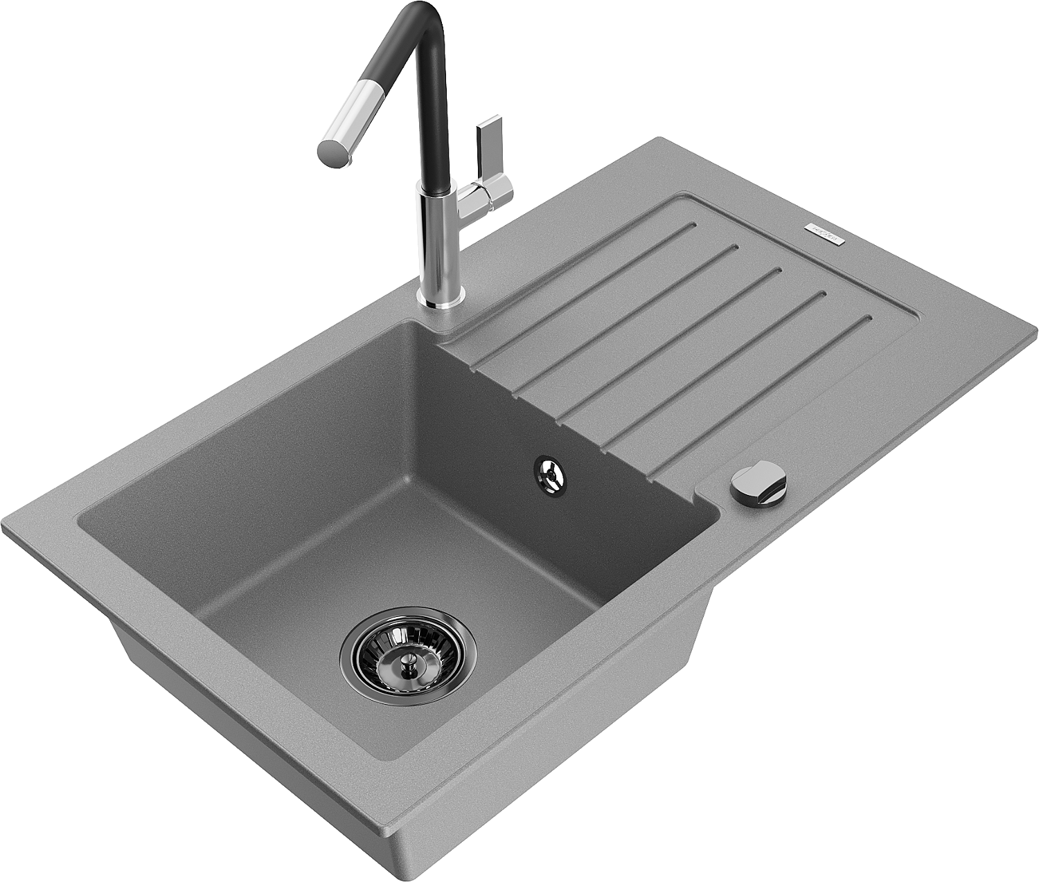 Mexen Pablo гранитна мивка с 1 отделение с отцедник и кухненски смесител Flora, сив - 6510-71-670401-07-B