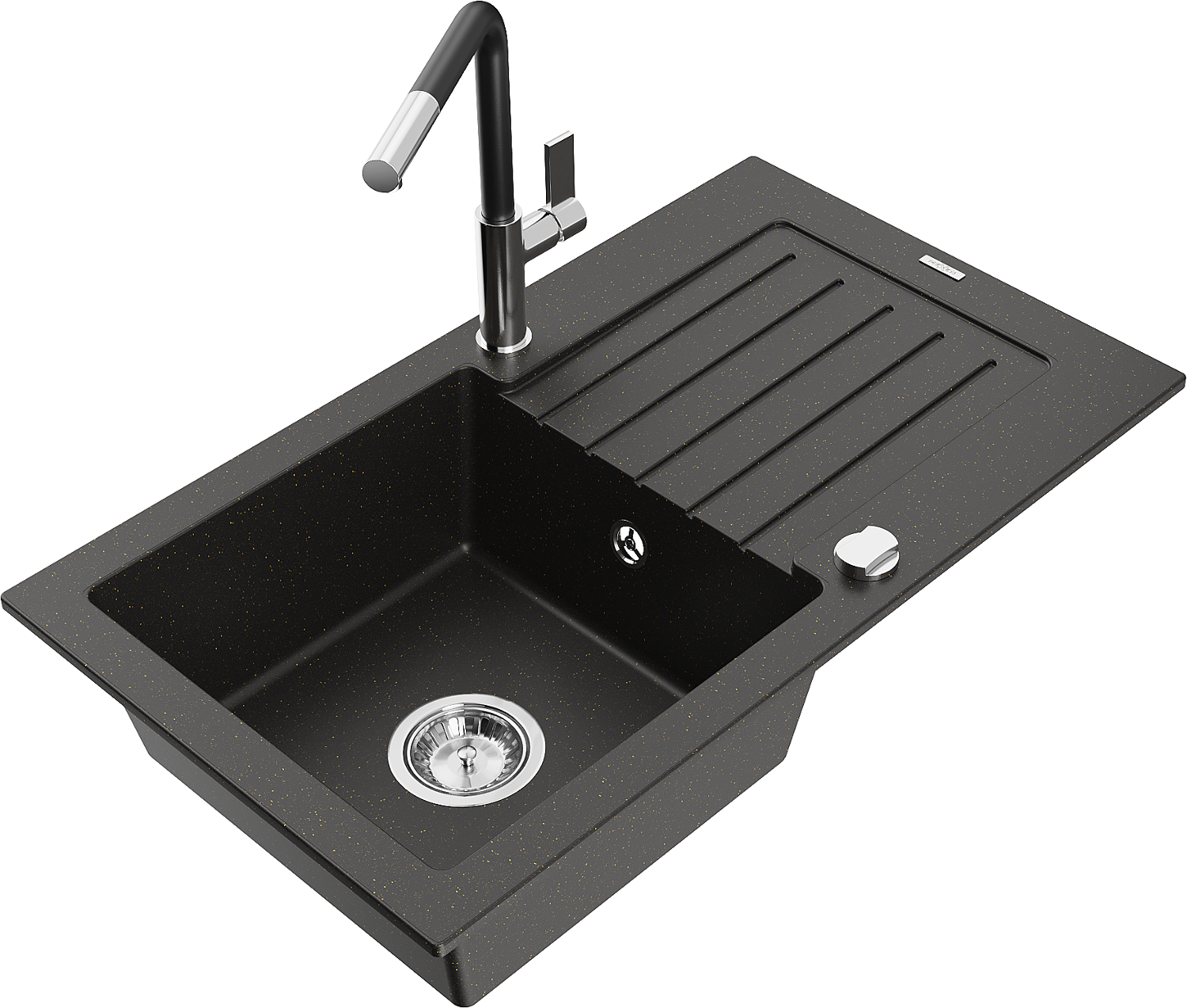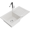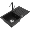 Mexen Pablo гранитна мивка с 1 корито с отцедник и кухненски смесител Flora,