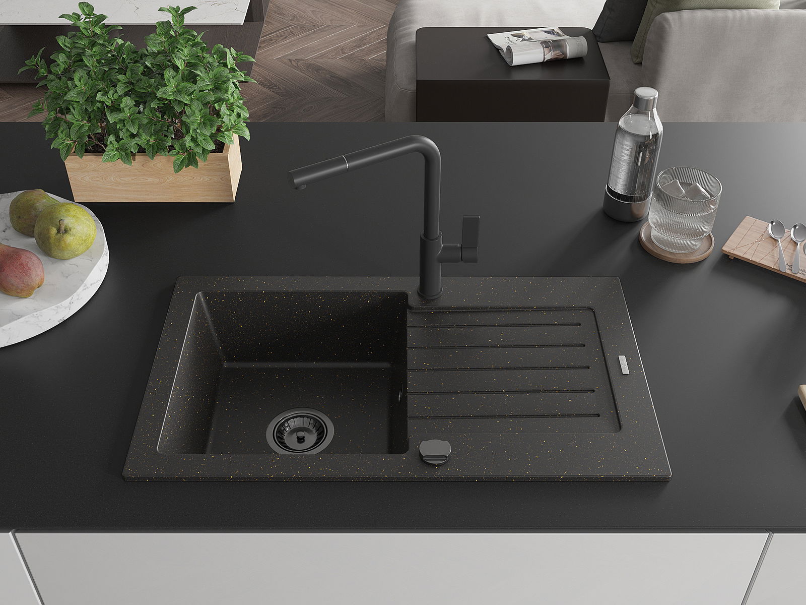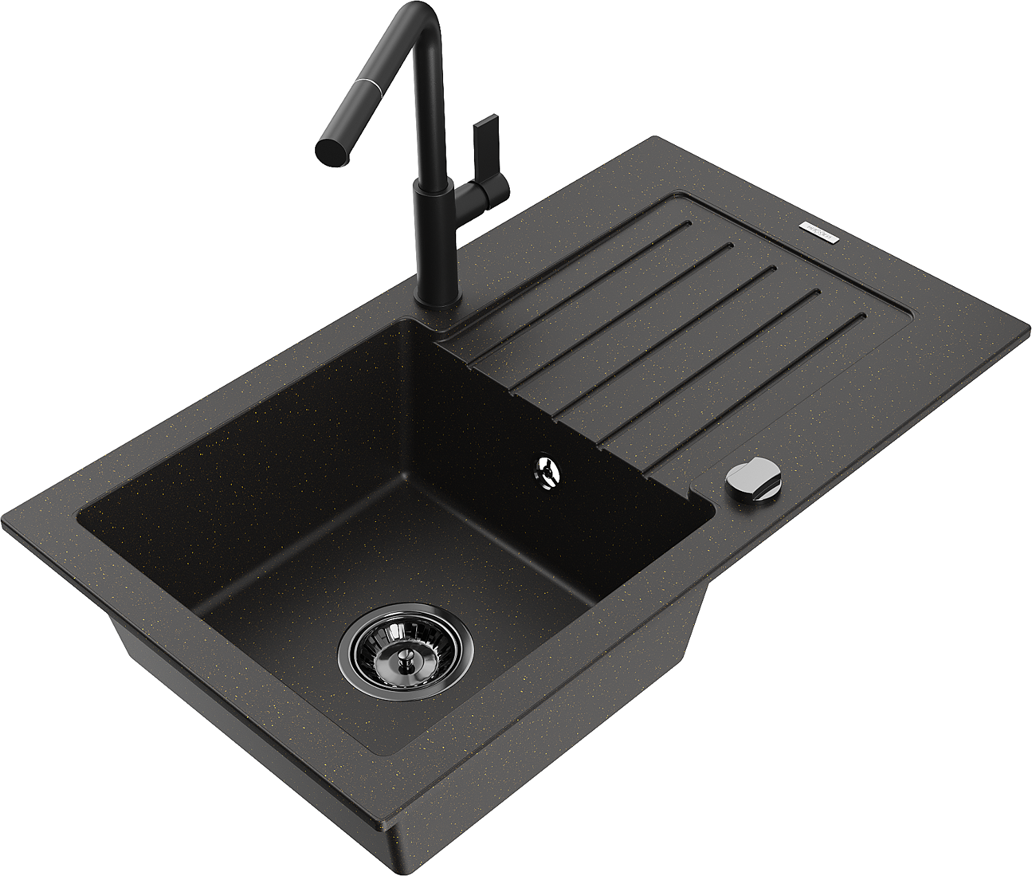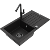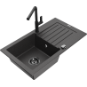 Mexen Pablo гранитна мивка с 1 камера с отцеждане и кухненски смесител Flora,