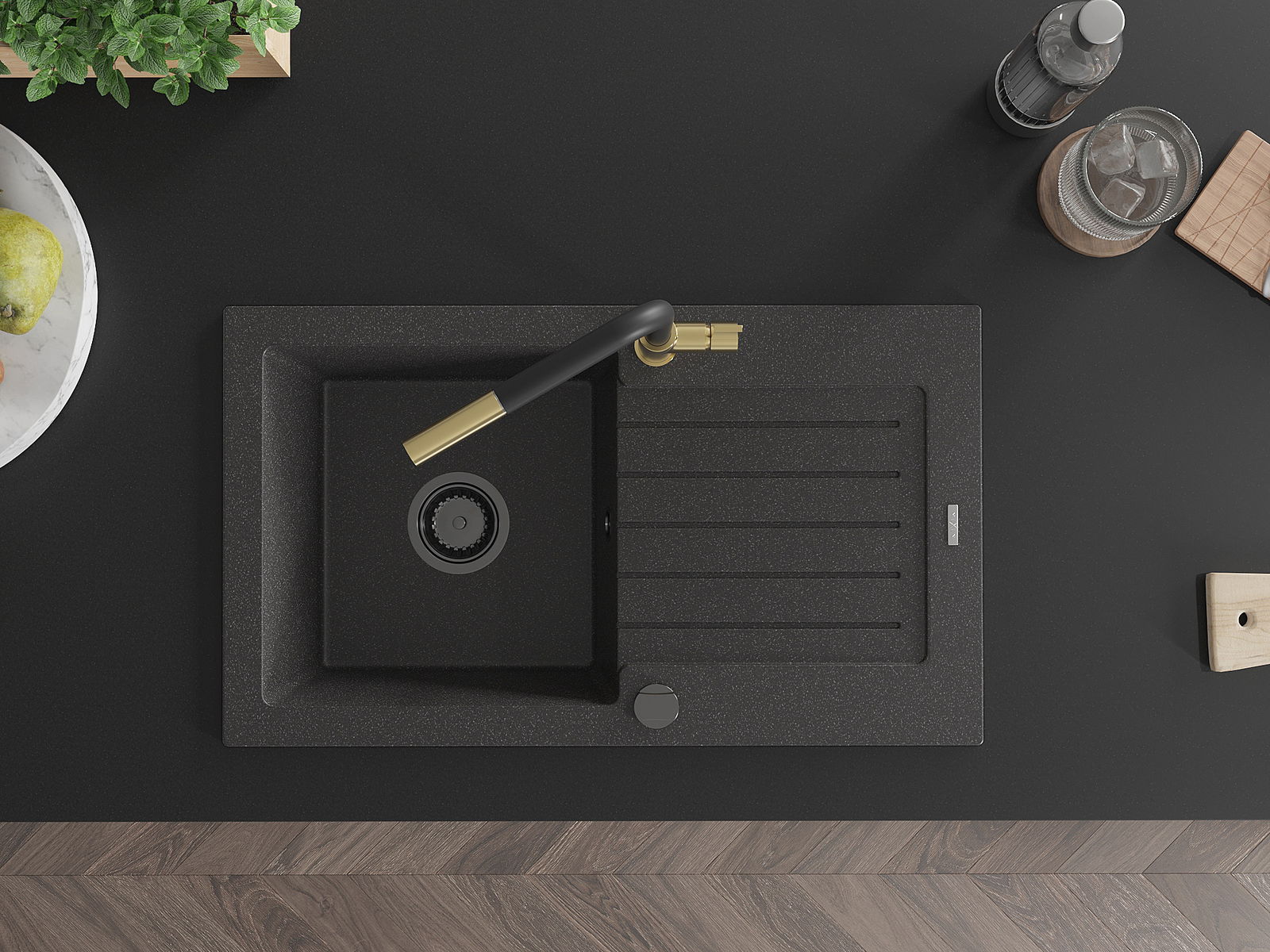Мивката е направена от висококачествен гранит. Това е елегантно и най -вече практично допълнение към всяка кухня, независимо от нейния стил. Висококачествената и гранитна издръжливост осигуряват много години употреба.