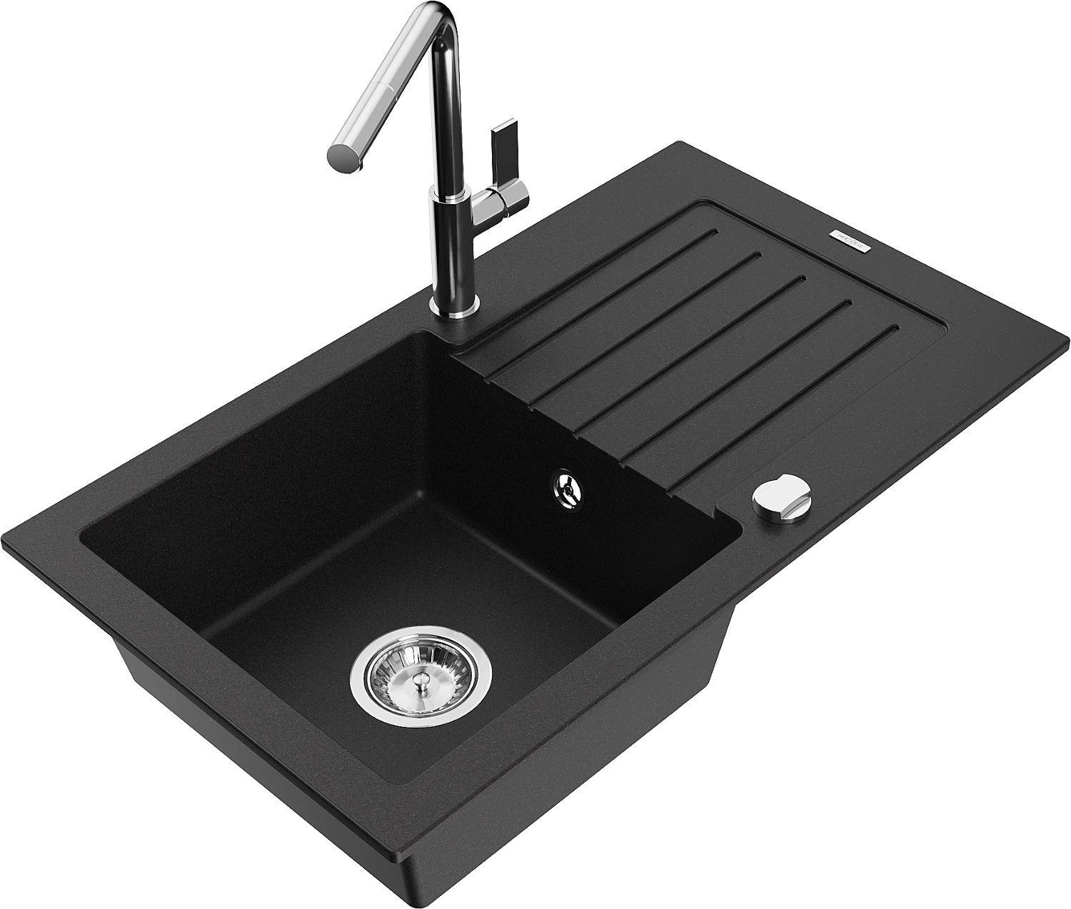 Mexen Pablo гранитна мивка с 1 отделение и изтичаща повърхност с кухненски смесител Flora, черен - 6510-77-670401-00