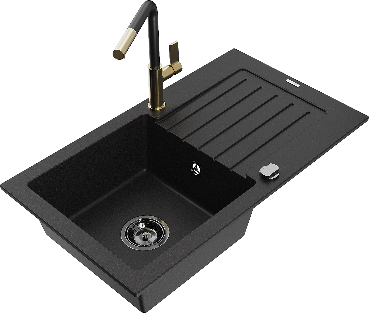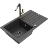 Mexen Pablo гранитна мивка с 1 отделение с отцедник и кухненски смесител Flora, черен - 6510-77-670401-57-B