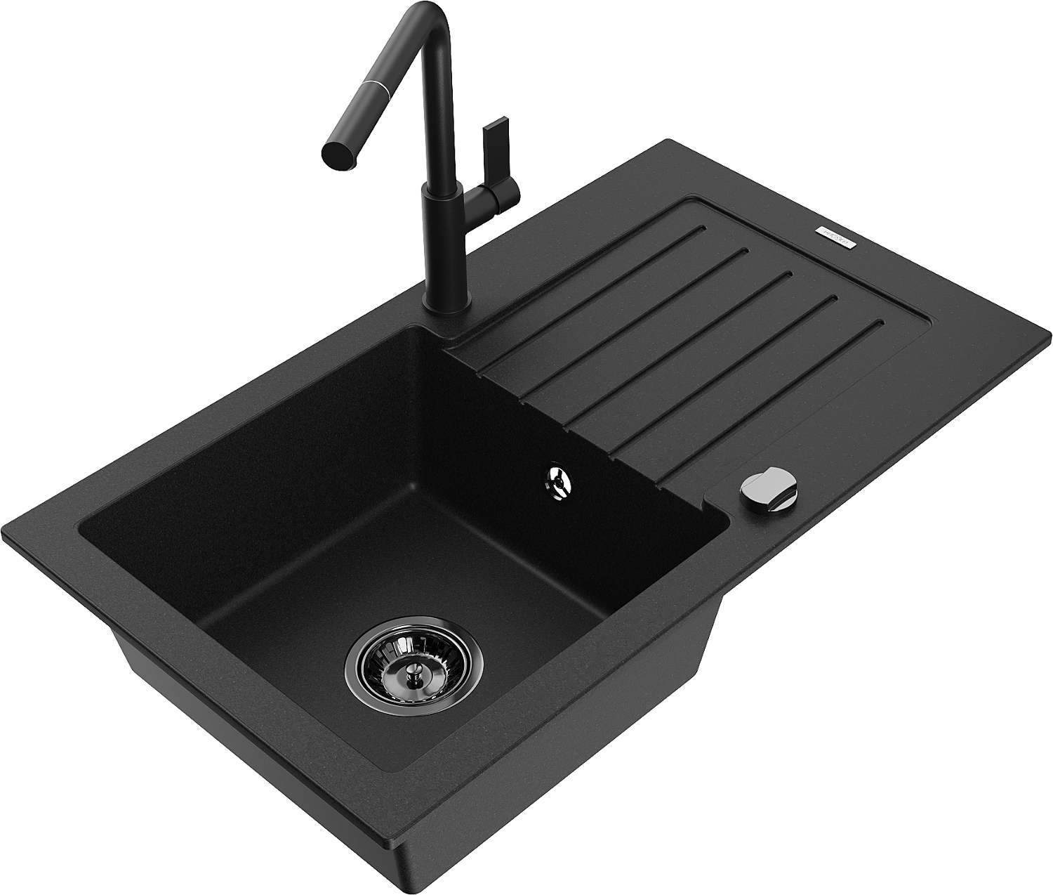 Mexen Pablo гранитна мивка с 1 отделение с отцедник и кухненски смесител Flora, черен - 6510-77-670401-70-B