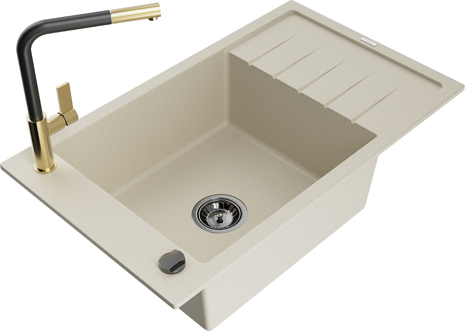 Mexen Elias мивка от гранит с 1 отделение с дренаж и кухненски смесител Flora, бежов - 6511-69-670401-57-B