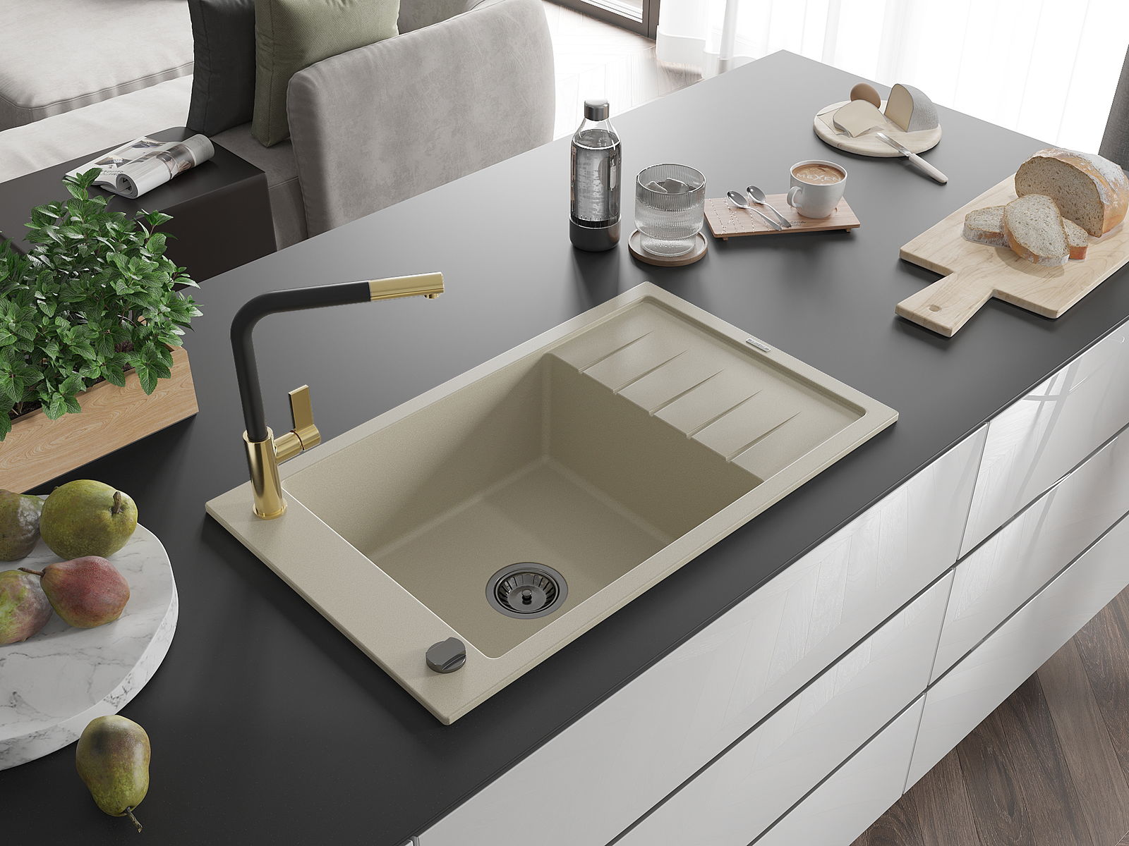 Мивката е направена от висококачествен гранит. Това е елегантно и най -вече практично допълнение към всяка кухня, независимо от нейния стил. Висококачествената и гранитна издръжливост осигуряват много години употреба.