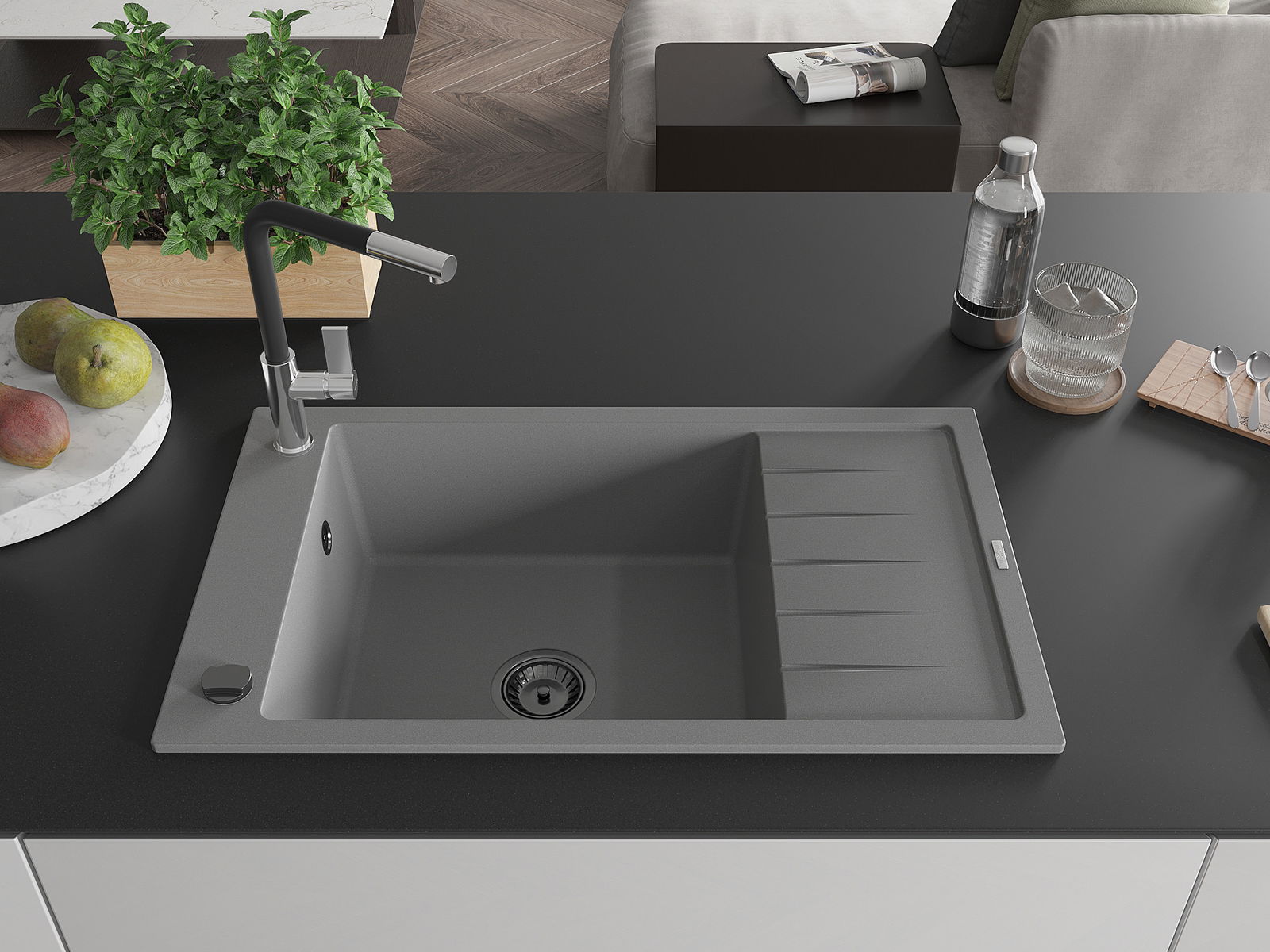 Мивката е направена от висококачествен гранит. Това е елегантно и най -вече практично допълнение към всяка кухня, независимо от нейния стил. Висококачествената и гранитна издръжливост осигуряват много години употреба.