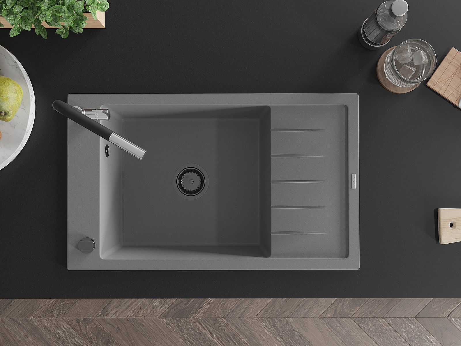 Mexen Elias гранитна мивка с 1 отделение с отцедник и кухненски смесител Flora, сив - 6511-71-670401-07-B