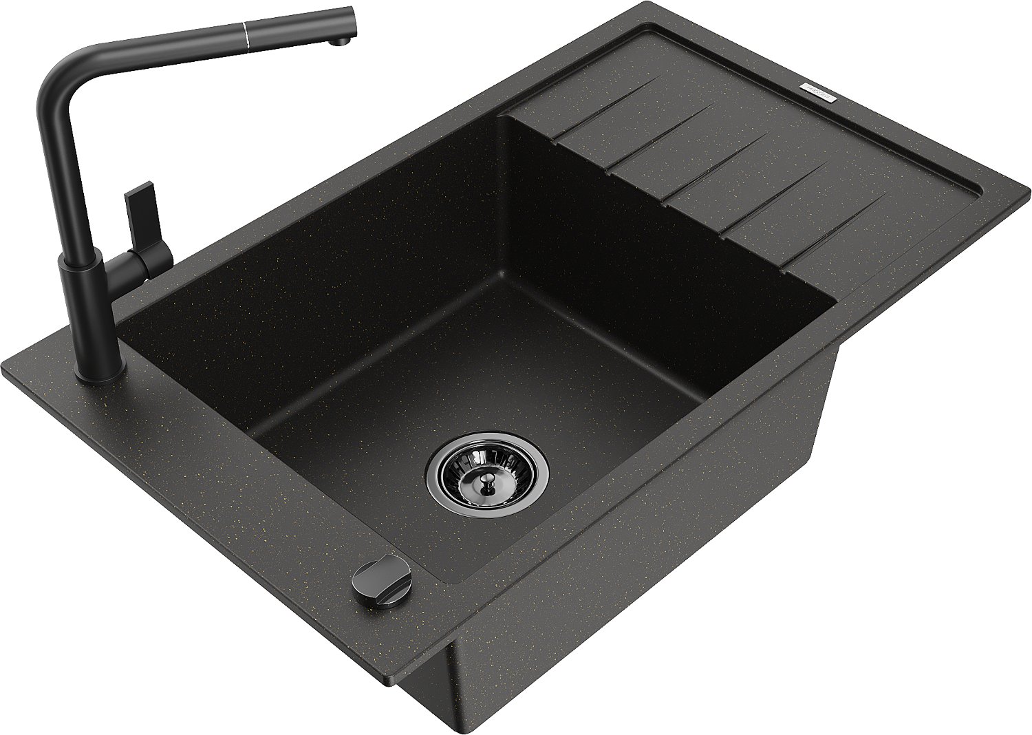 Мивката е направена от висококачествен гранит. Това е елегантно и най -вече практично допълнение към всяка кухня, независимо от нейния стил. Висококачествената и гранитна издръжливост осигуряват много години употреба.