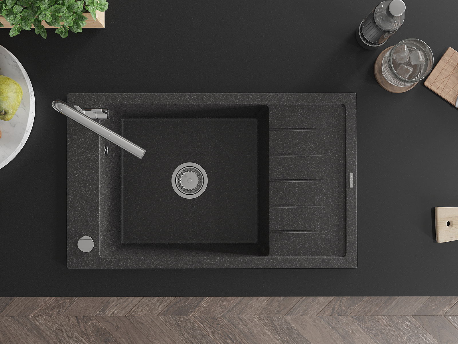 Мивката е направена от висококачествен гранит. Това е елегантно и най -вече практично допълнение към всяка кухня, независимо от нейния стил. Висококачествената и гранитна издръжливост осигуряват много години употреба.
