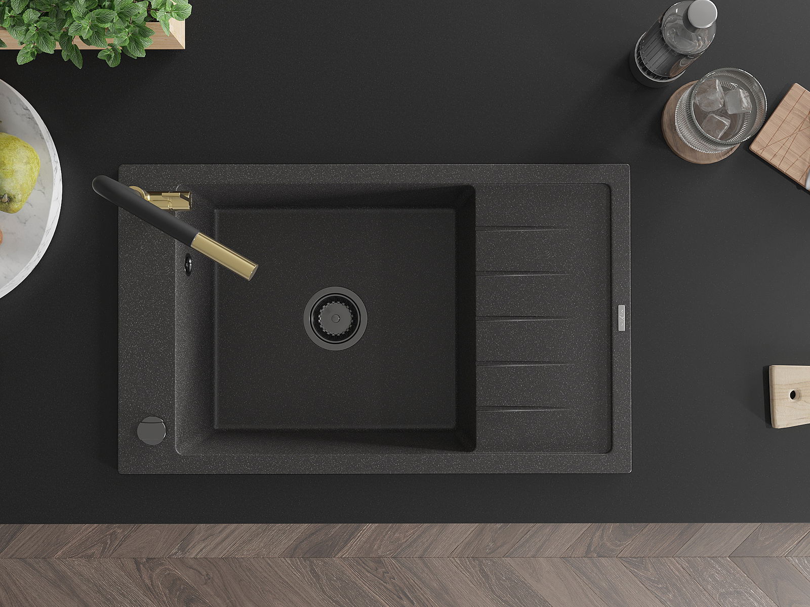 Мивката е направена от висококачествен гранит. Това е елегантно и най -вече практично допълнение към всяка кухня, независимо от нейния стил. Висококачествената и гранитна издръжливост осигуряват много години употреба.