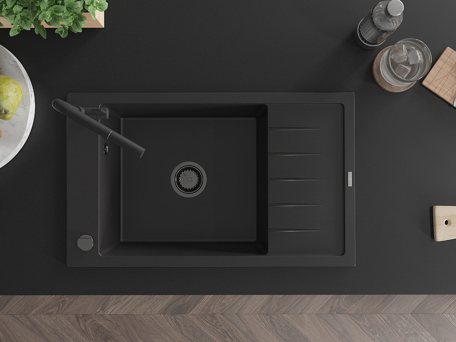Mexen Elias гранитна мивка с 1 корито с отцедник и кухненски смесител Flora,