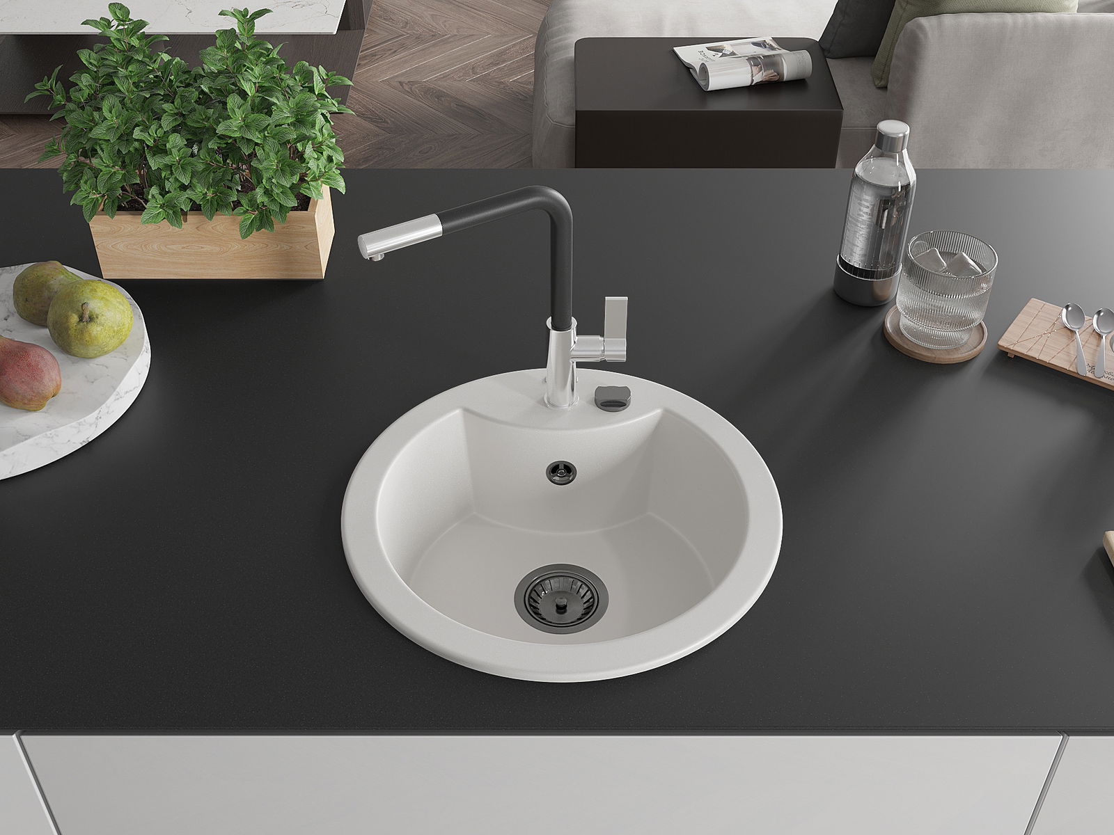 Мивката е направена от висококачествен гранит. Това е елегантно и най -вече практично допълнение към всяка кухня, независимо от нейния стил. Висококачествената и гранитна издръжливост осигуряват много години употреба.