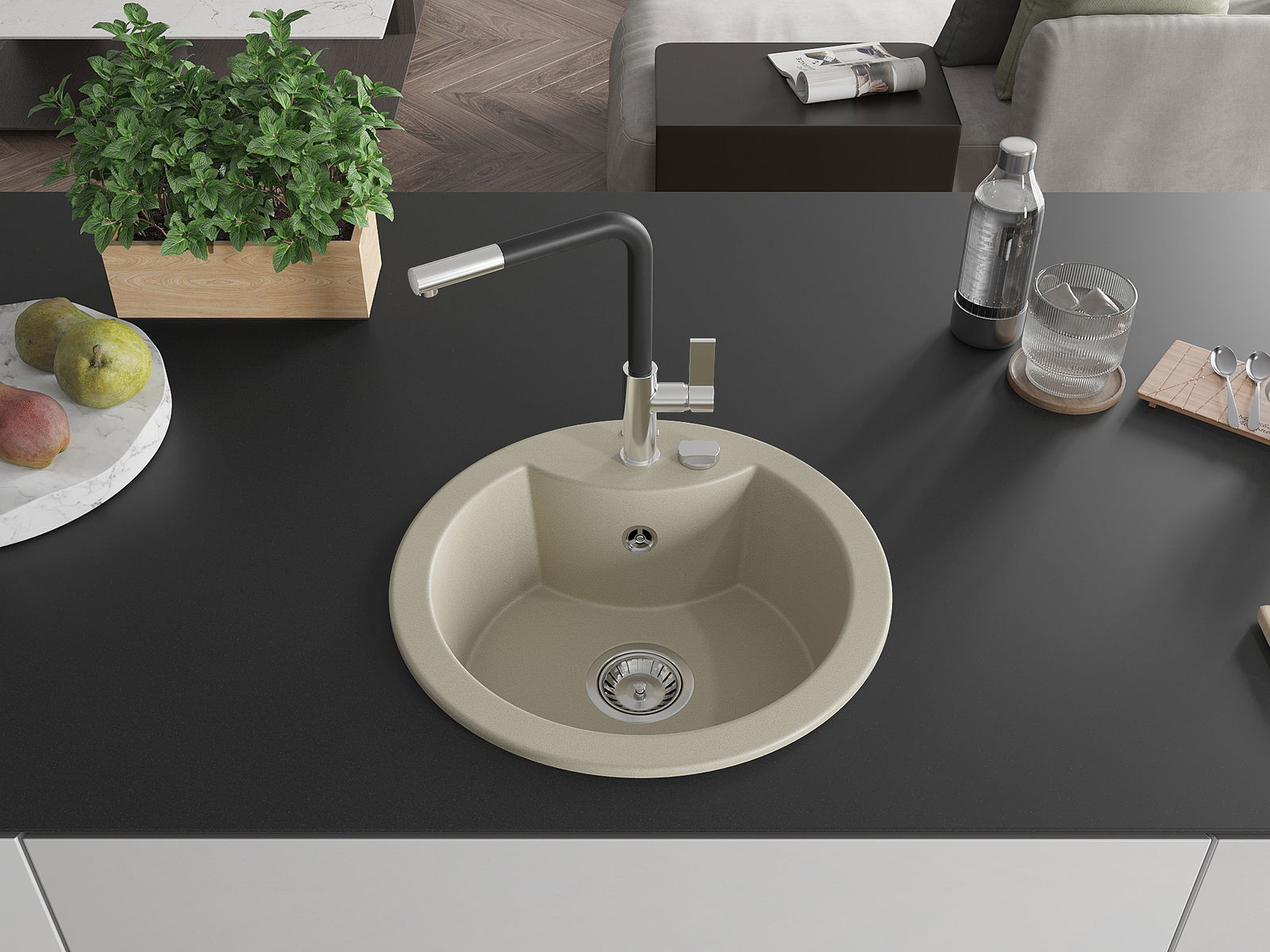 Мивката е направена от висококачествен гранит. Това е елегантно и най -вече практично допълнение към всяка кухня, независимо от нейния стил. Висококачествената и гранитна издръжливост осигуряват много години употреба.