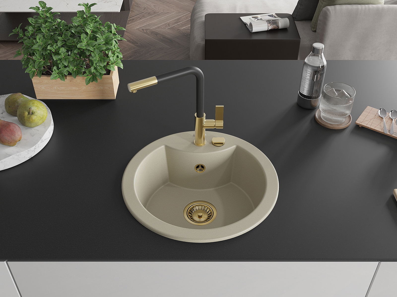 Мивката е направена от висококачествен гранит. Това е елегантно и най -вече практично допълнение към всяка кухня, независимо от нейния стил. Висококачествената и гранитна издръжливост осигуряват много години употреба.